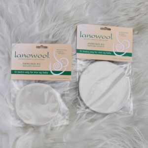 I flere av våre barselpakker har vi dessuten et par deilige ammeinnlegg i ull. Det er viktig å holde brystet varmt og tørt, så melken flyter bedre og risikoen for infeksjon reduseres. Lanowool ammeinnlegg er fremstilt av meget fin og myk merinoull, og er bearbeidet med biologisk nedbrytbare vaskemidler. De er laget av en silketynt merinoulltråd og er pustende. Ammeinnleggene kleber ikke til såre og tørre brystvorter. De er myke og behagelige å ha på. De absorberer brystmelken, da ulla naturlig transporterer fuktigheten bort fra kroppen. De kan brukes i hele ammeperioden. Også til sensitiv hud og bryster. Innleggene finnes i 2 størrelser, da de skal passe til brystets størrelse. Vi anbefaler å vaske ammeinnleggene hver dag i begynnelsen av ammeperioden, deretter bør de vaskes en gang i uken. Ammeinnleggene kan vaskes ved 30 grader både for hånd og på ullprogram i vaskemaskinen. Det kan brukes ullvaskemiddel. Sørg for at du skyller såpen godt ut, og at du presser så mye vann ut som mulig. Ammeinnleggene strekkes deretter i fasong før de lufttørkes.