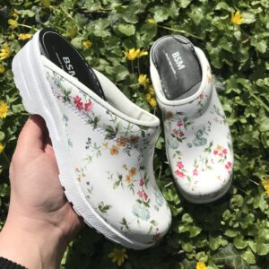 Den deilige treskoen fra Birkenstock med den kjente korkbunnen, og de myke og komfortable treskoene / clogs fra Crocs i det lette skummaterialet, som er utrolig sterkt og behagelig å ha på, på lange arbeidsdager.