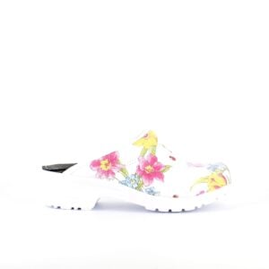 De hvite treskoene som vi har her hos Sykepleiebutik.no, og som særlig brukes på sykehus, pleiehjem og lignende, hvor gulvene slike steder kan være glatte eller våte, fås naturligvis med sklisikre såler.