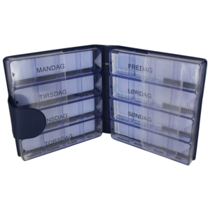 Utforsk Sykepleiebutikkens store utvalg av pilleesker og pilleeskemapper til din medisin. Med den riktige pilleesken blir det mye lettere å planlegge, og finne ut hvilke piller som skal inntas fremover, og ikke minst huske om du har tatt eller glemt dem.