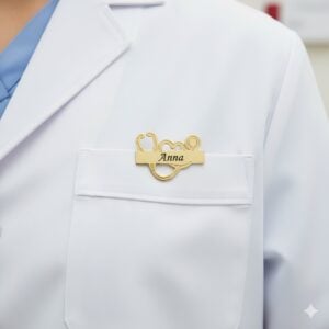 Du kan få gravert navneskilt med ditt navn og tittel. Eller du kan få våre penholdere, sykepleiesakser eller et mangfold av våre sykepleieur gravert.