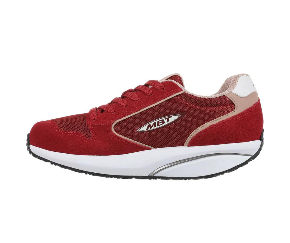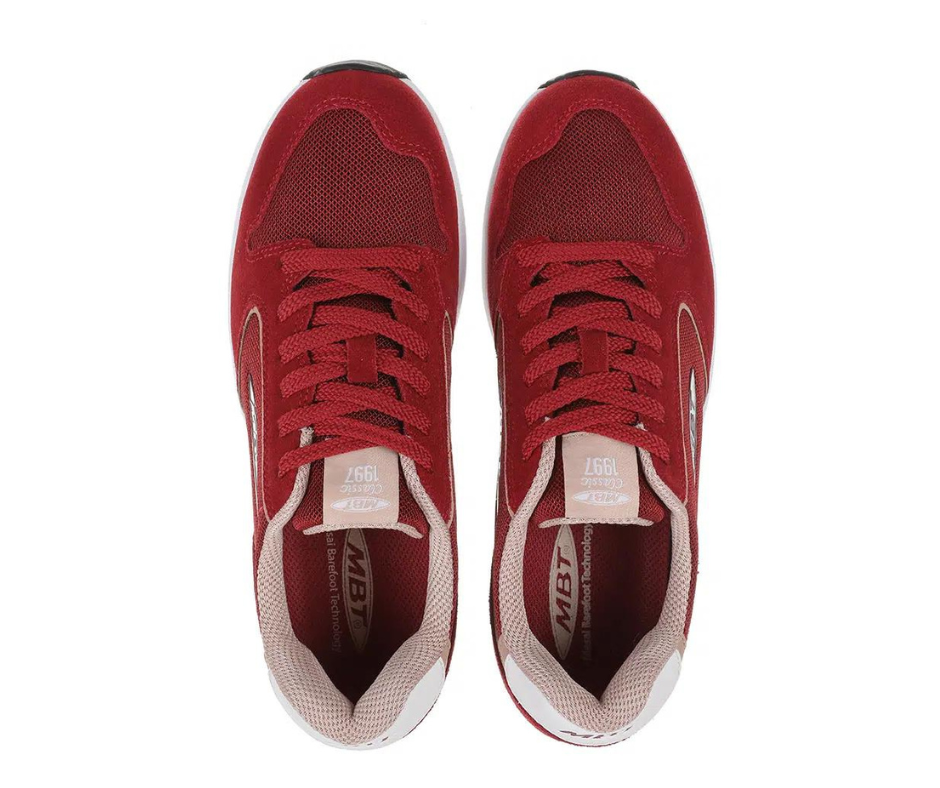 MBT 1997 Red Dahlia – en elegant rød damesko designet for å forene komfort og stil.