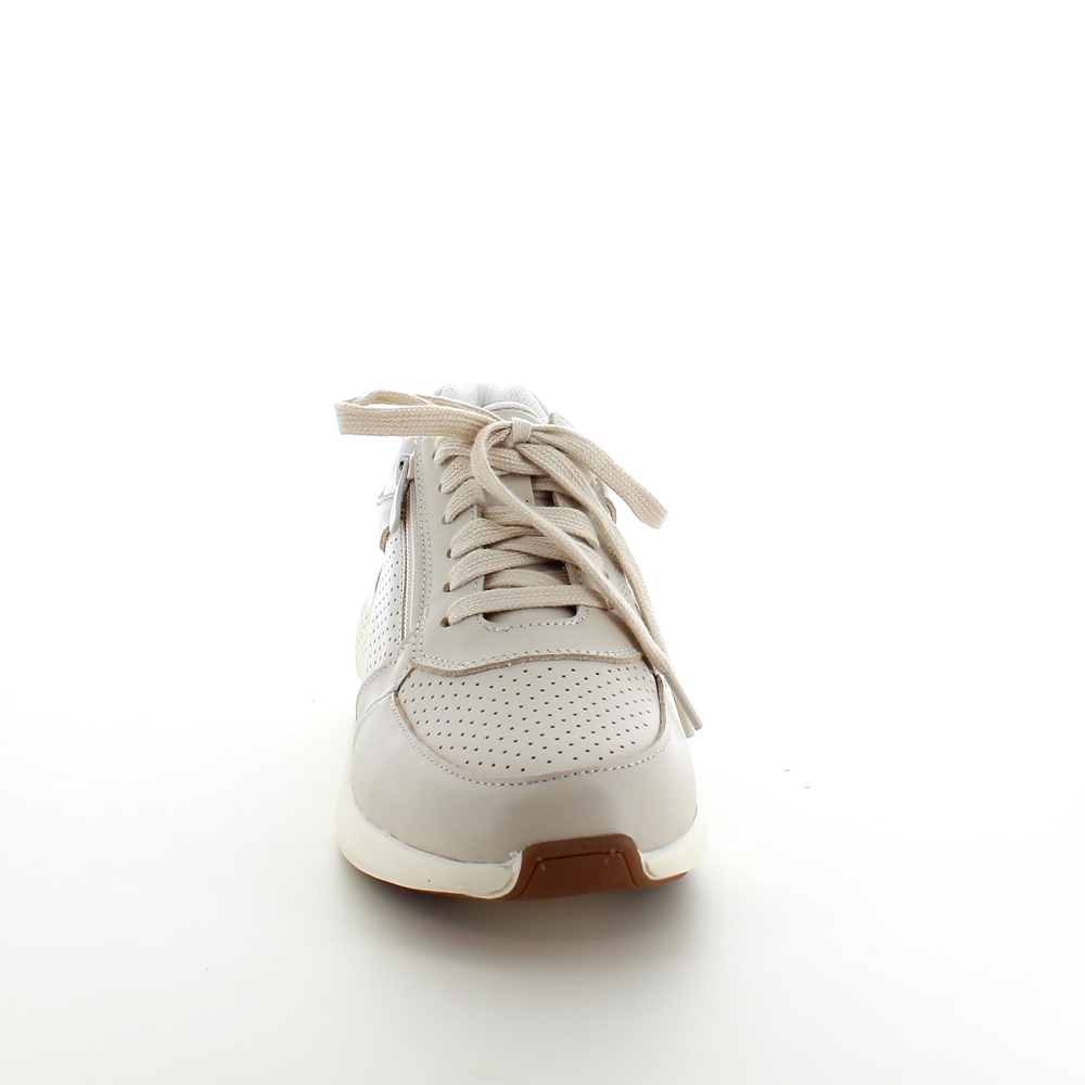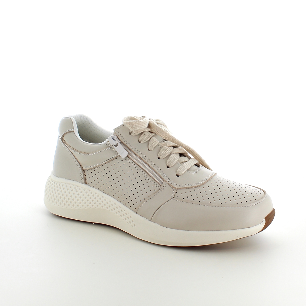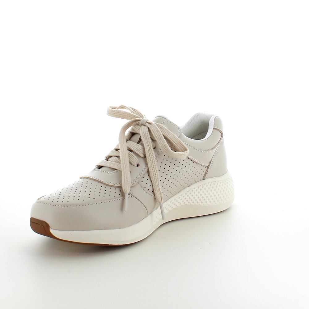 Smart råhvit sko i deilig mykt kalveskinn, som på oversiden er perforert for bedre pusteevne.