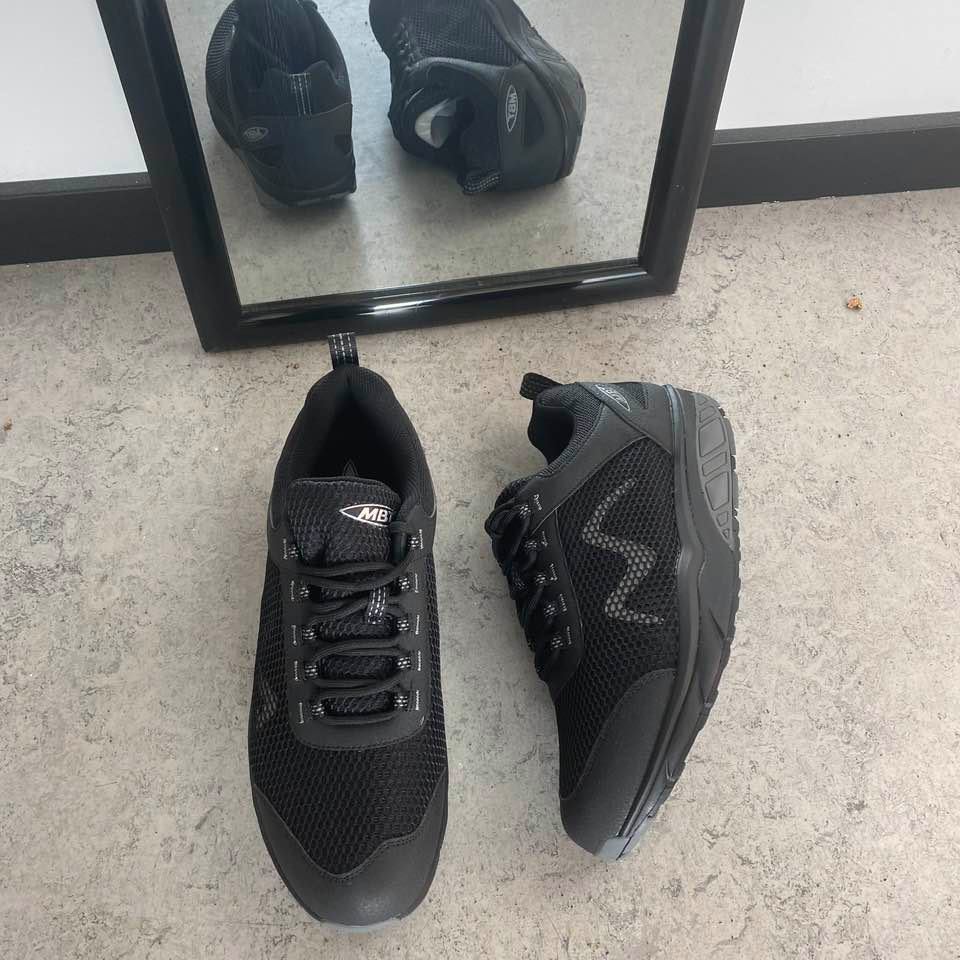 - Moderne design og høy komfort: MBT Aspen er den ideelle fritidsskoen i svart, med en ekstra luftig mesh-overdel, grå sensor, non-marking yttersåle og snørebånd, som sikrer en behagelig passform og stilfullt uttrykk.