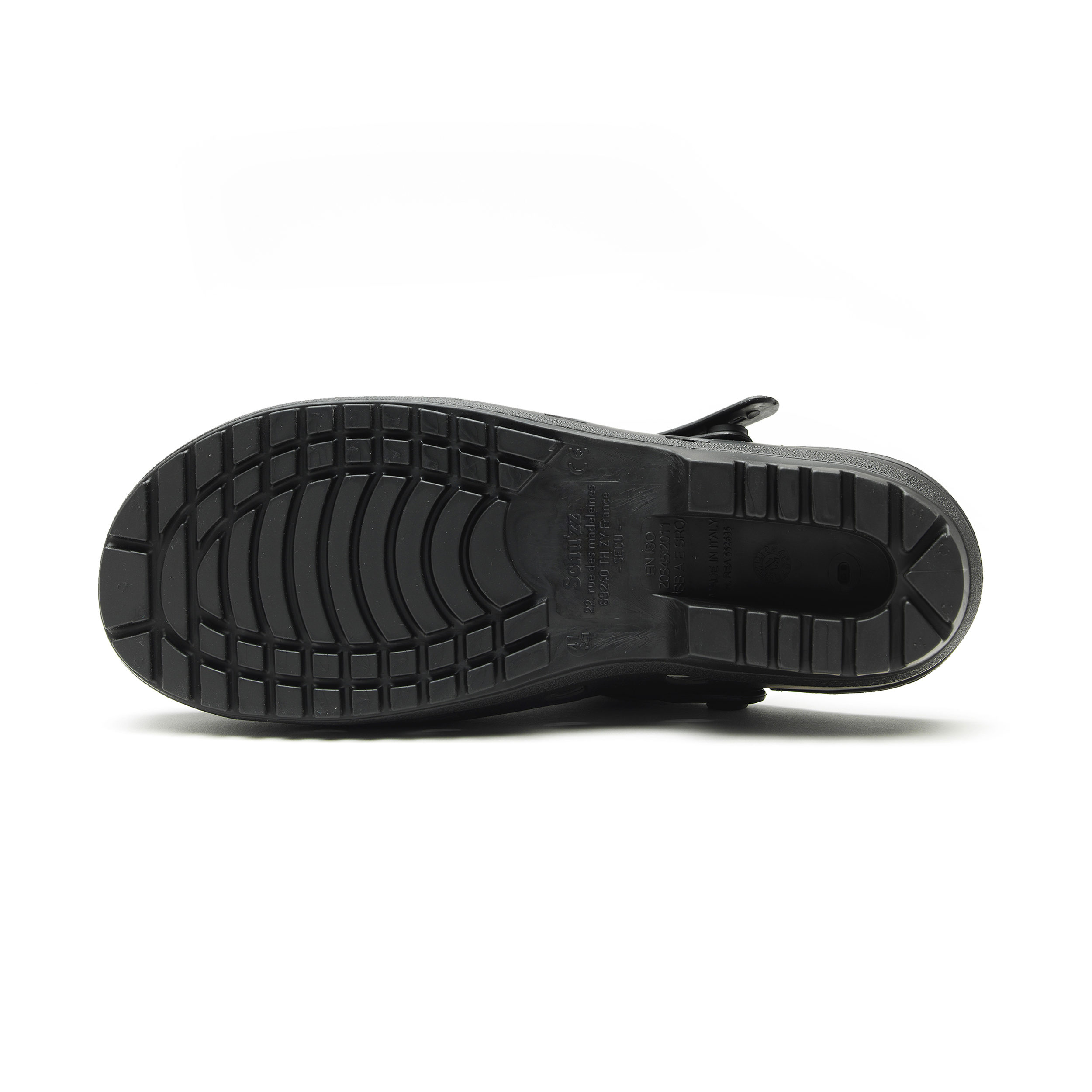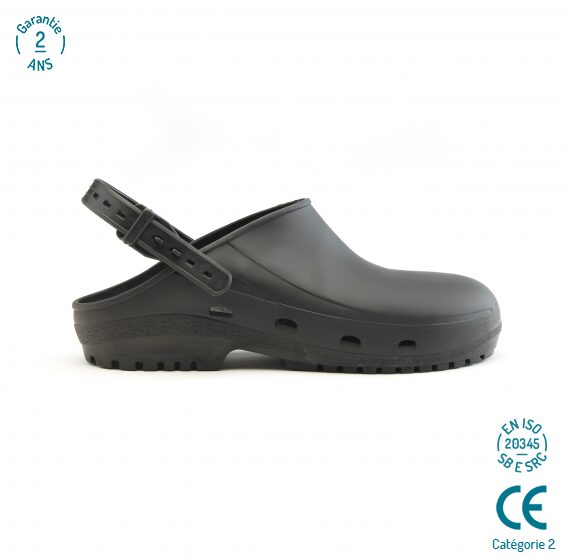 Godkjent i henhold til ISO 20345, SB og SRC. Antistatisk og ergonomisk clog.
