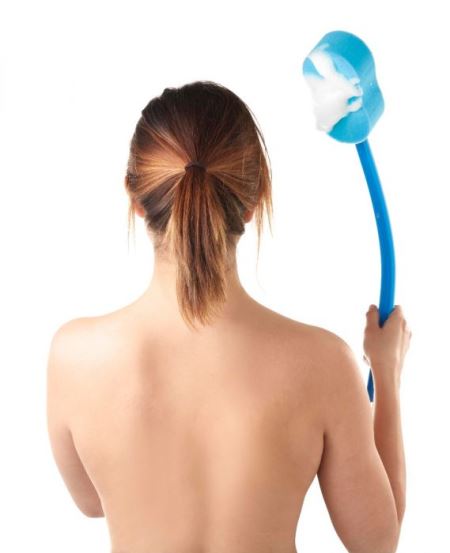 Denne badesvamp er utstyrt med et forlenget skaft, som gjør det mye lettere å vaske hele kroppen – selv de vanskelig tilgjengelige områdene som ryggen. Det spesielle med dette skaftet er at det kan oppvarmes med en hårføner og deretter bøyes til akkurat den formen brukeren ønsker, slik at det passer til individuelle behov.