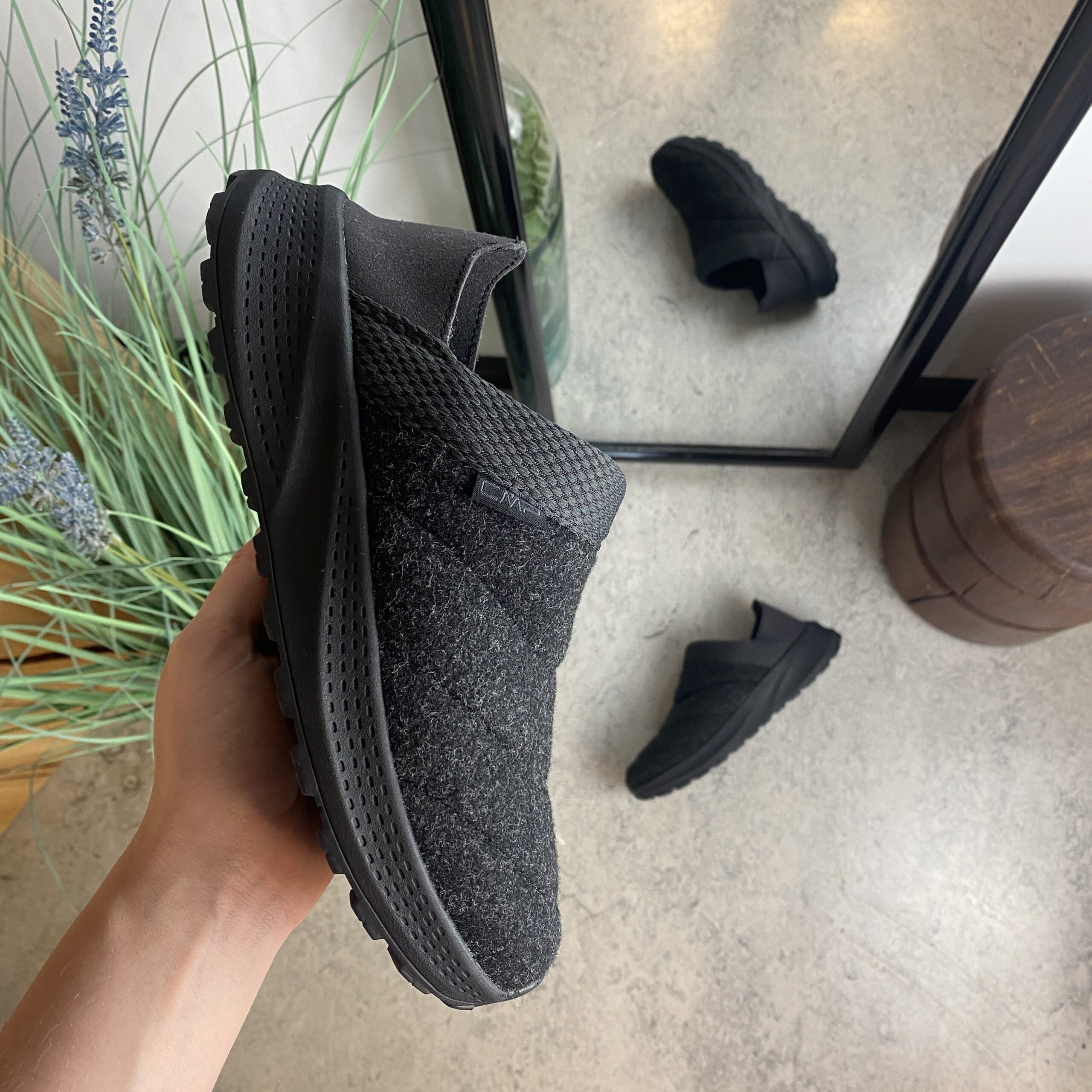Hjemmeskoen er laget i myk filt og gir en behagelig, varm og fleksibel passform.
