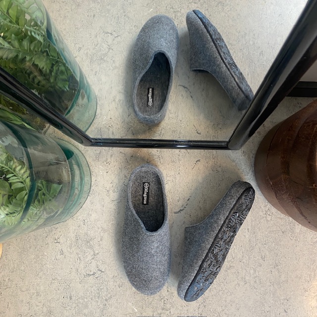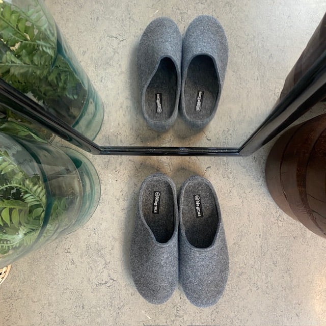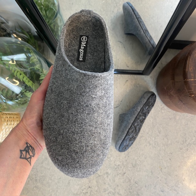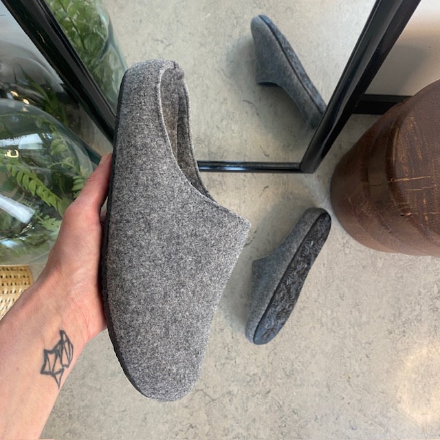 Det myke filtmaterialet i tøffelen holder føttene varme.