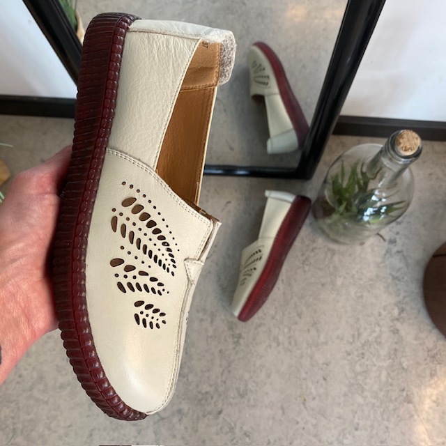 Det raffinerte, perforerte mønsteret og de synlige sømmene på overdelen gir skoen et elegant uttrykk.