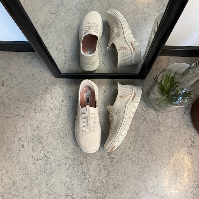 Beige Skechers slip-ons med svangstøtte