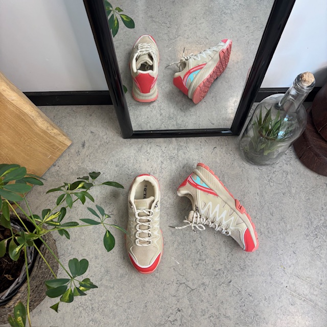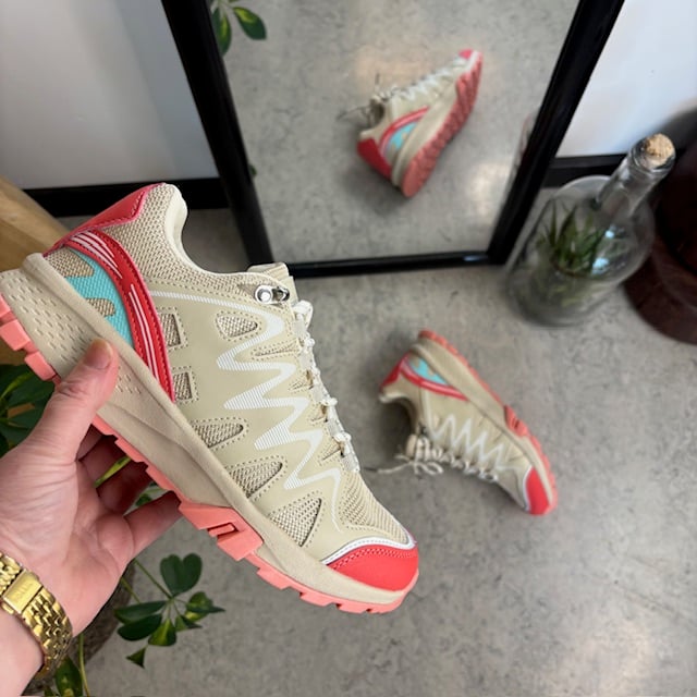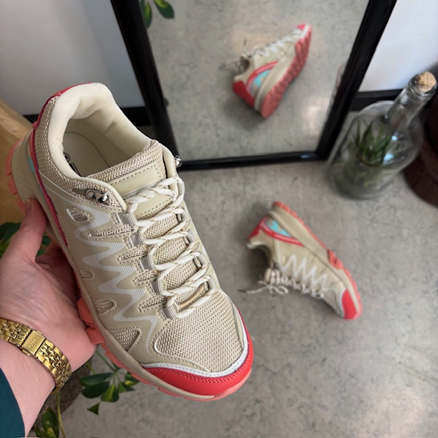 Disse lette og komfortable sko kombinerer et stilrent, beige design med vakre, rosa detaljer som gir et friskt og feminint uttrykk.