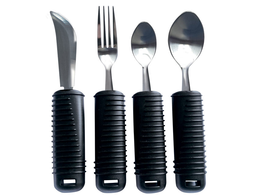 Vanlig bestikk er ofte tynt å holde på, og har du leddgikt i fingrene, kan det være vanskelig å få et godt grep. Da kan bestikk med tykke håndtak være et veldig godt hjelpemiddel for deg, fordi du med tykke håndtak ikke trenger å klemme så hardt til som med tynne skaft, og dermed unngår du at det glir ut av hendene eller vrir seg.