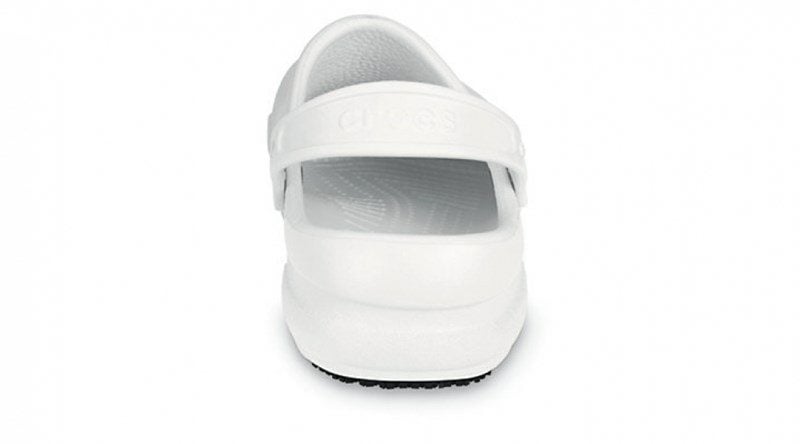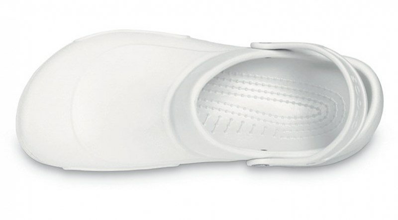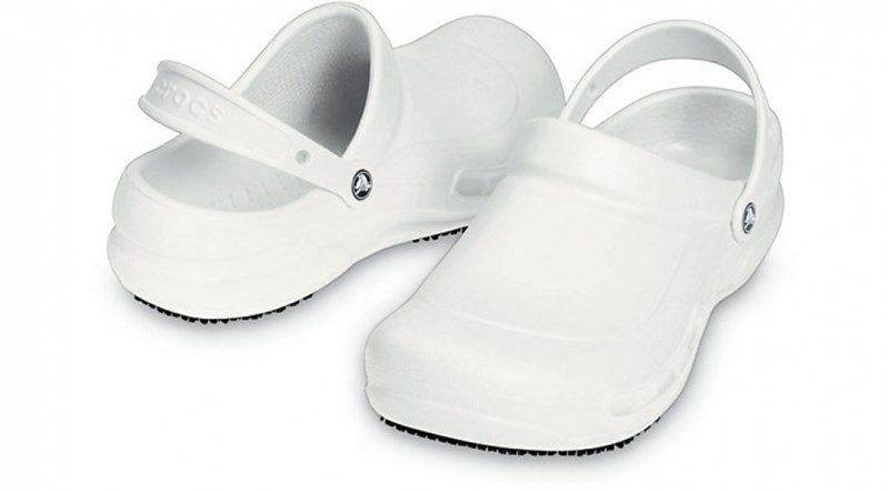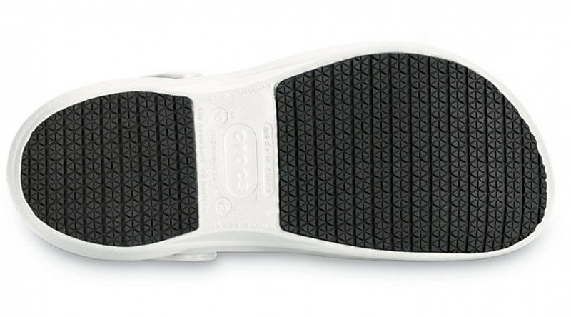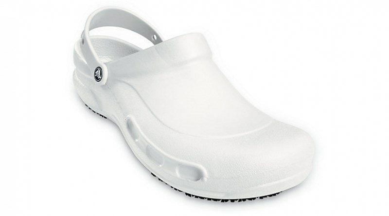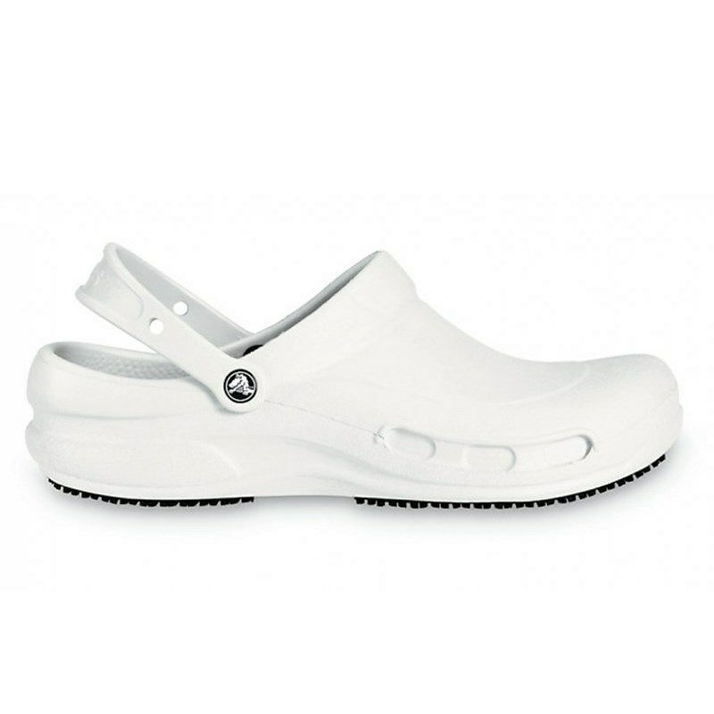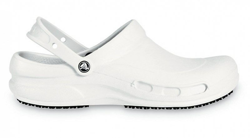 Den hvite Bistro treskoen fra Crocs med sklisikker såle. Derfor er den spesielt velegnet for sykepleiere, annet helsepersonell og til og med også andre fagområder, hvor godt fottøy er nødvendig for de lange arbeidsdagene.