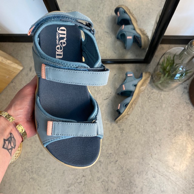 Opplev komfort hele dagen med denne blå Green Comfort sandal, perfekt for lange arbeidsdager og aktive utendørsopplevelser.