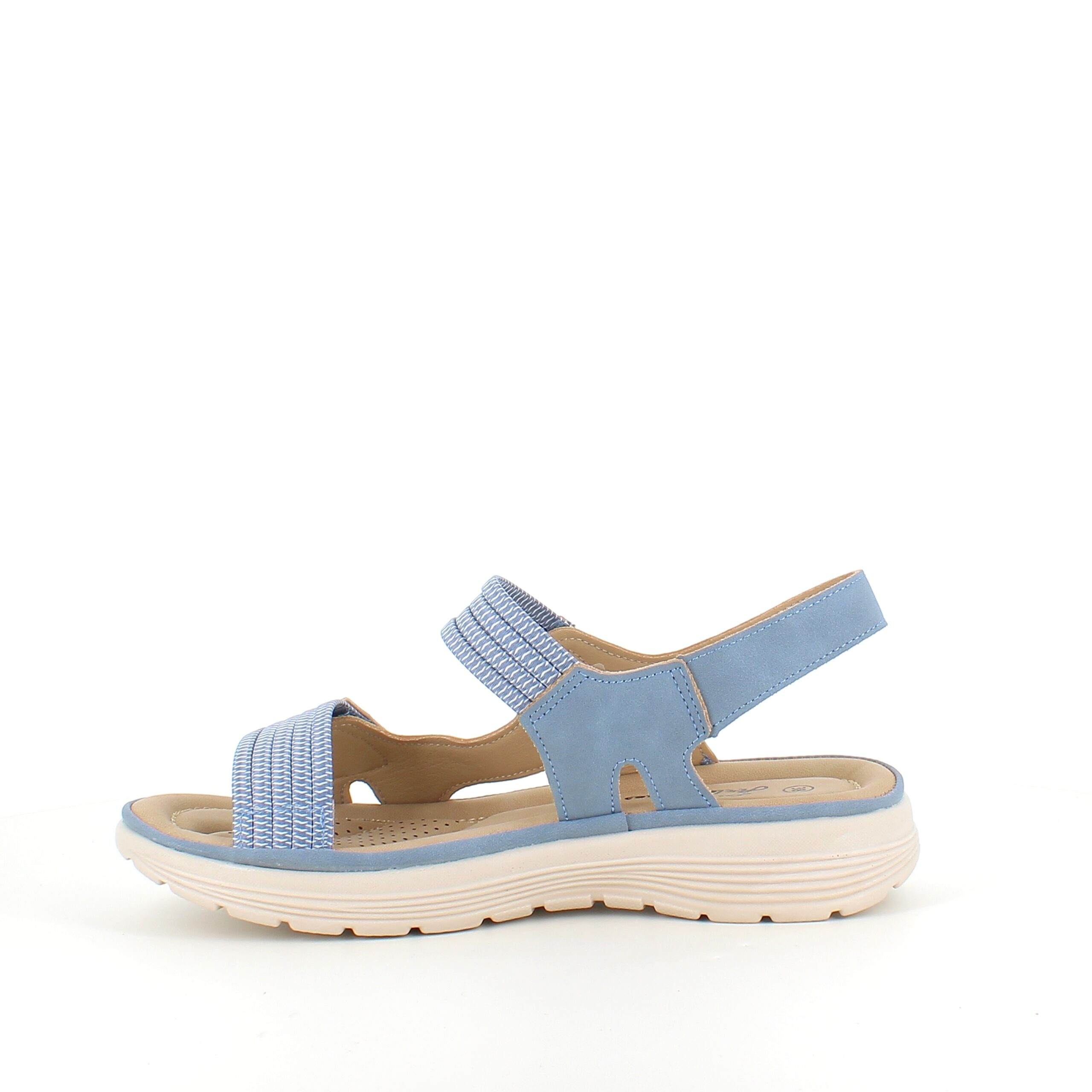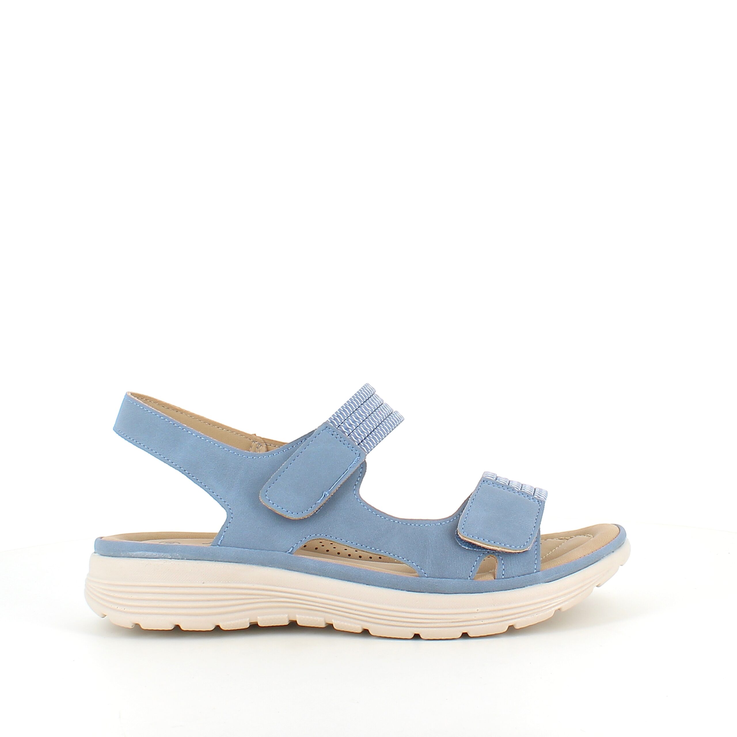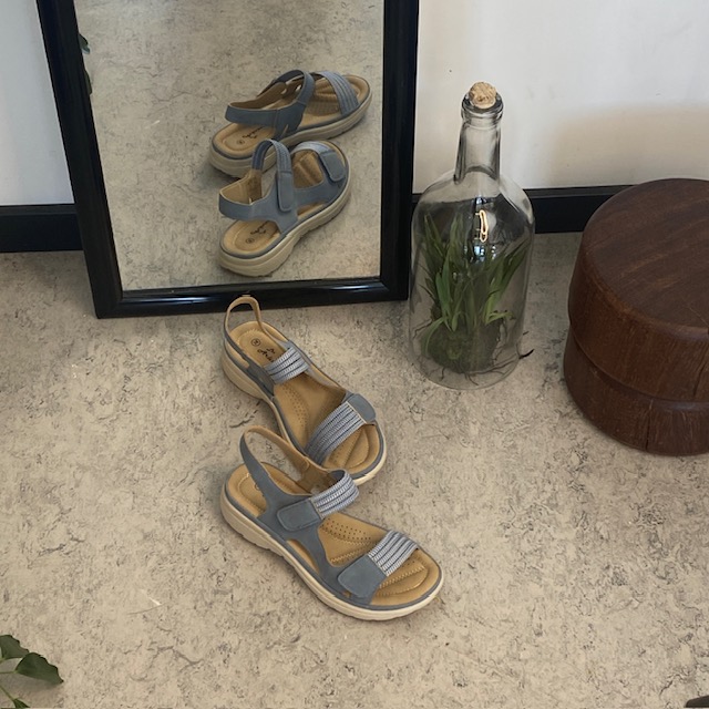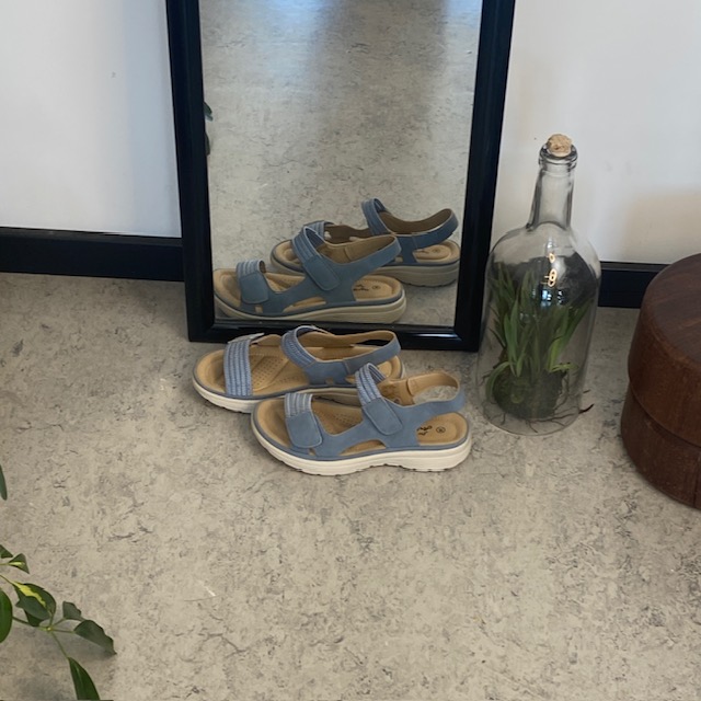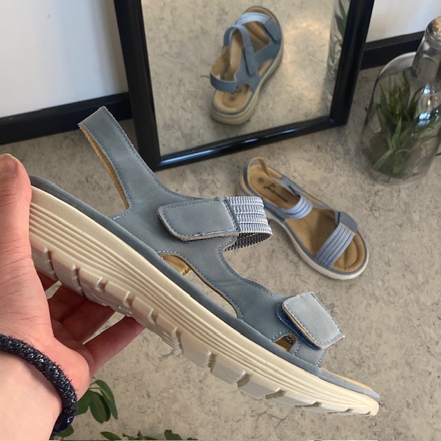 Denne flotte blå komfortsandal er skapt for deg som ønsker maksimal bevegelighet og støtte i hverdagen – uten å kompromittere stilen. Med sine myke materialer, smarte elastiske detaljer og tre borrelåslukkinger får du en sandal som er både praktisk, fleksibel og moderne.