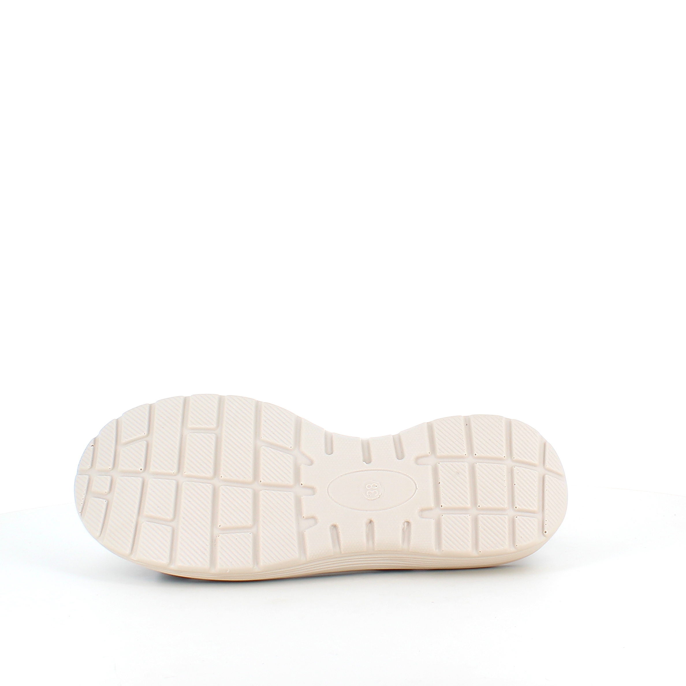 Sandalen er laget i en kombinasjon av elastikk, som sikrer en behagelig passform, selv hvis føttene dine hovner opp i løpet av dagen. Den myke innersålen med lett svangstøtte og perforeringer sørger for god pusteevne og komfort, mens yttersålen gir et solid og stabilt fraspark.