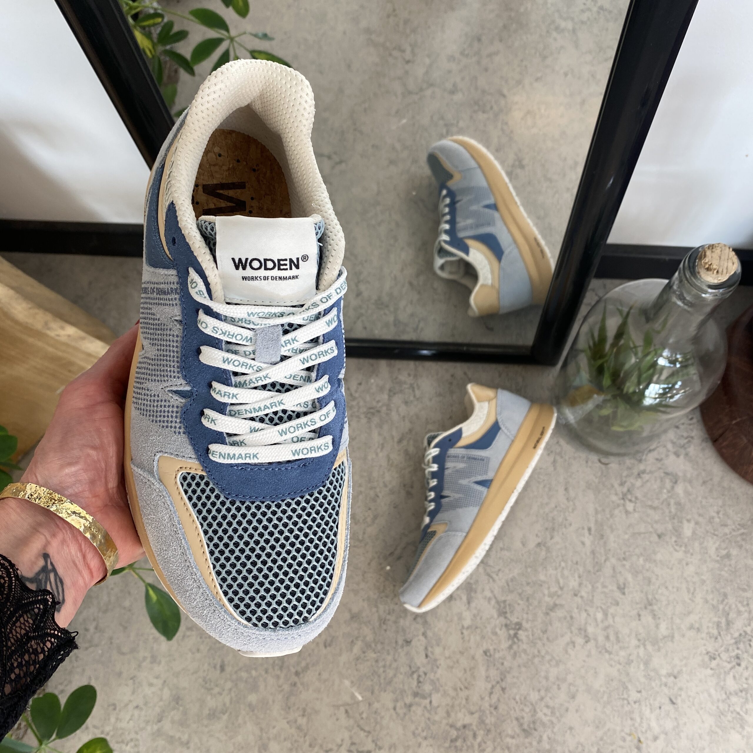 Blå lette sko i pustende materiale fra Woden.