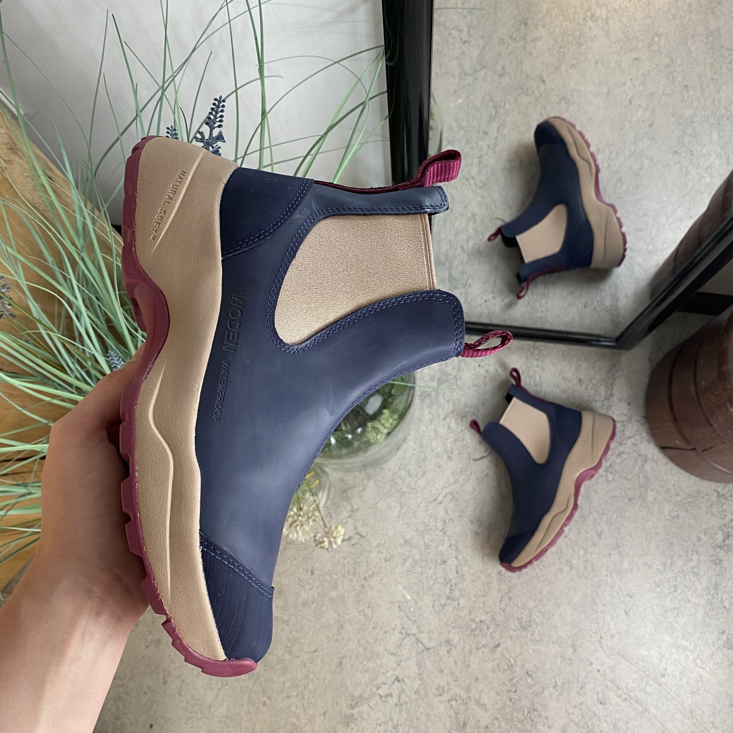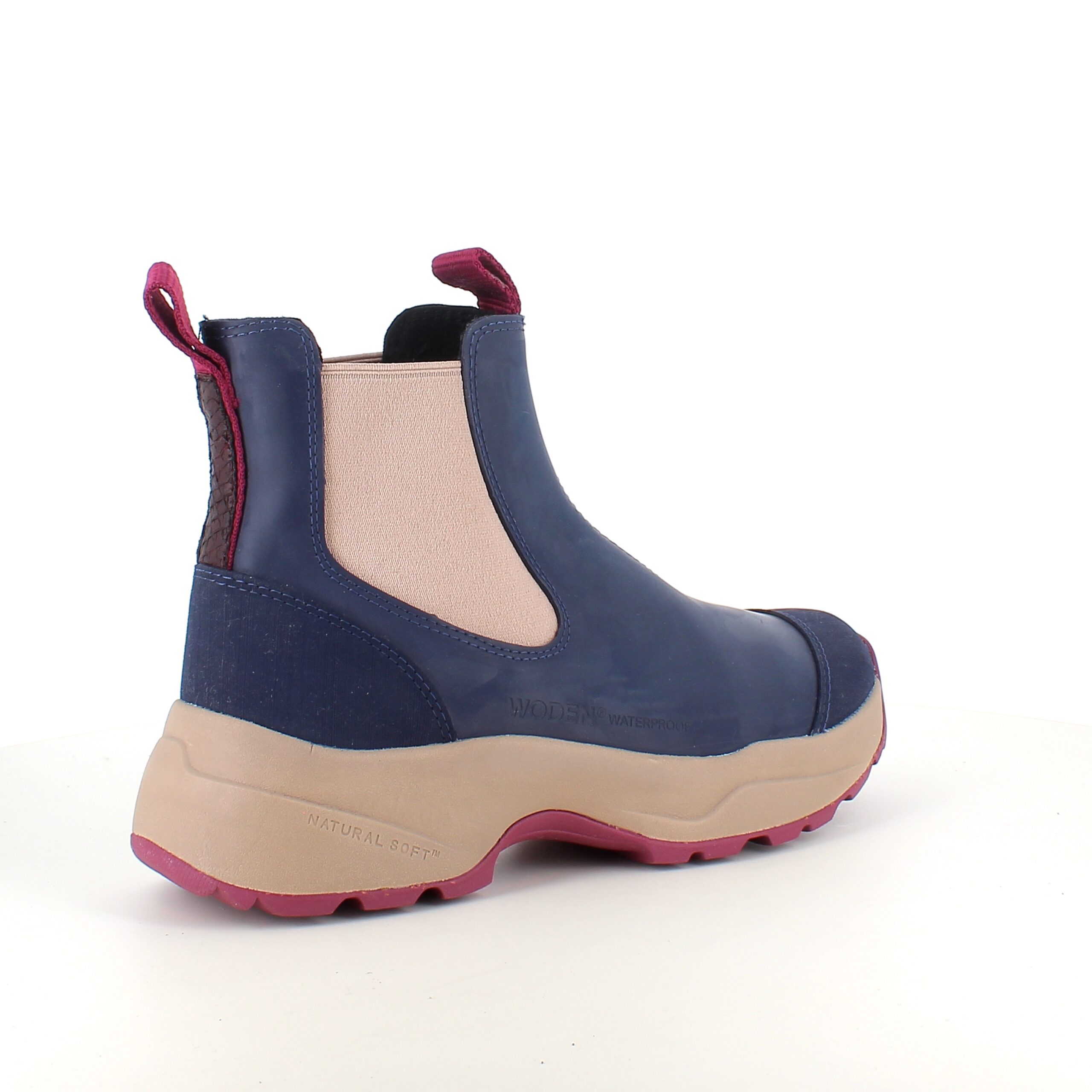 Woden gummistøvelen er en robust og vanntett støvel. Den har et stilrent, sklisikkert design og er pyntet med fine detaljer i fiskeskinn på hælen. Den karakteristiske sålen er utviklet med fokus på komfort og fullfører støvelens funksjonelle uttrykk.