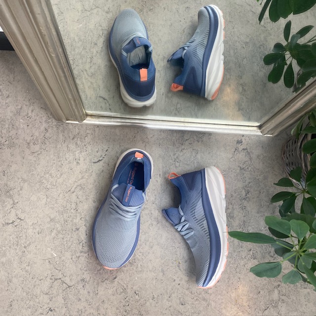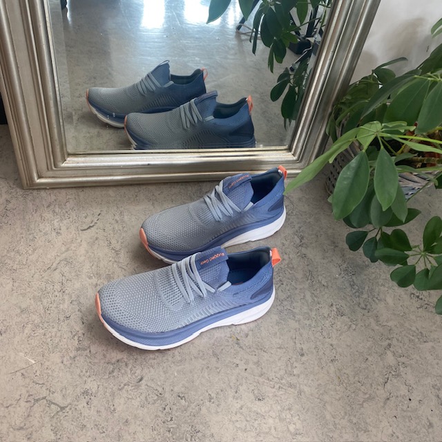 Blå pustende slip-on sko med støtdemping