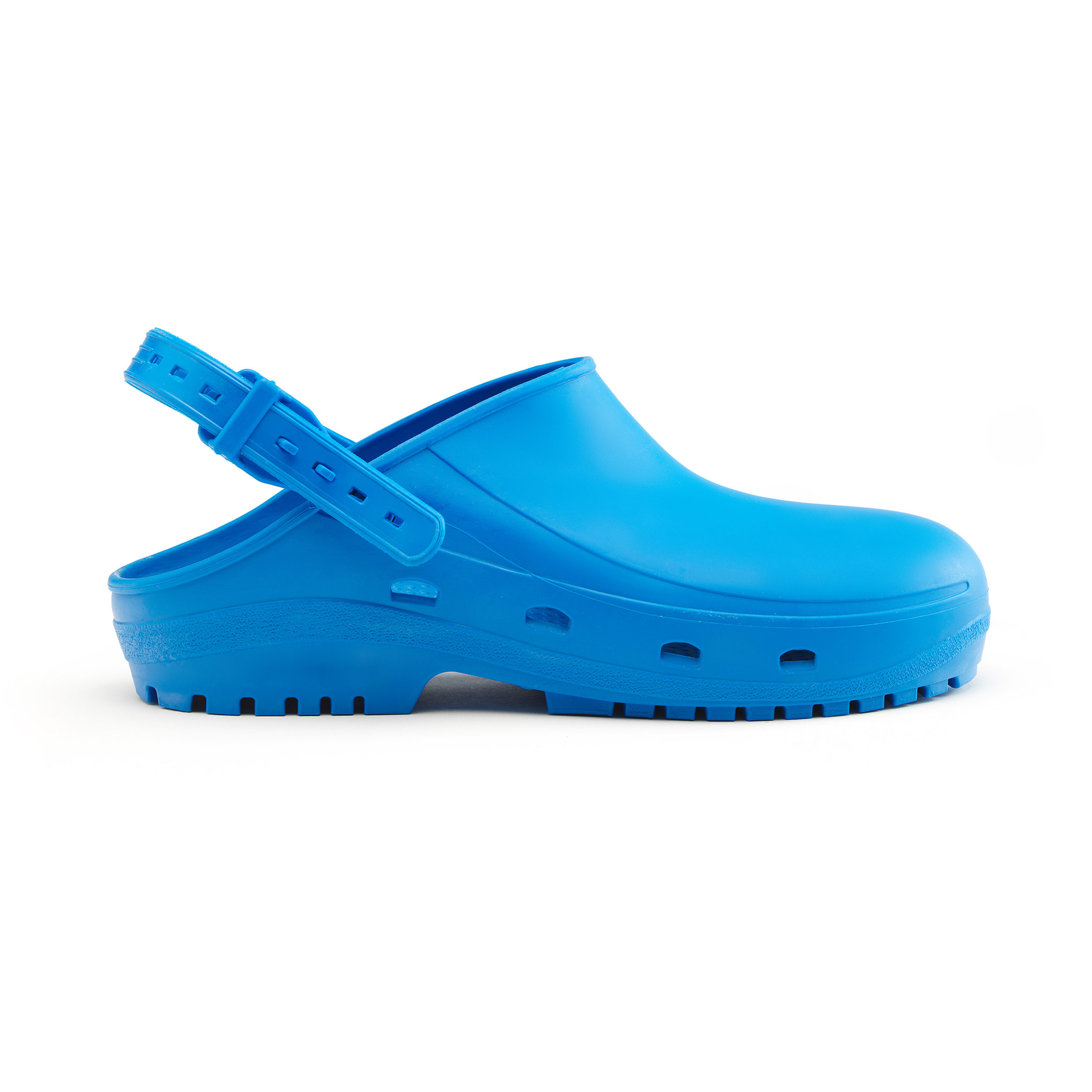 Blå autoklaverbar clog med antistatiske sklisikre såler