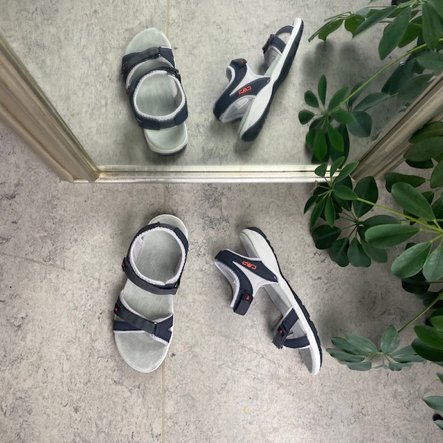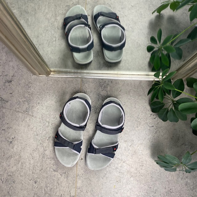 Sandalen kan justeres med borrelås-remmene på forfot og vrist.