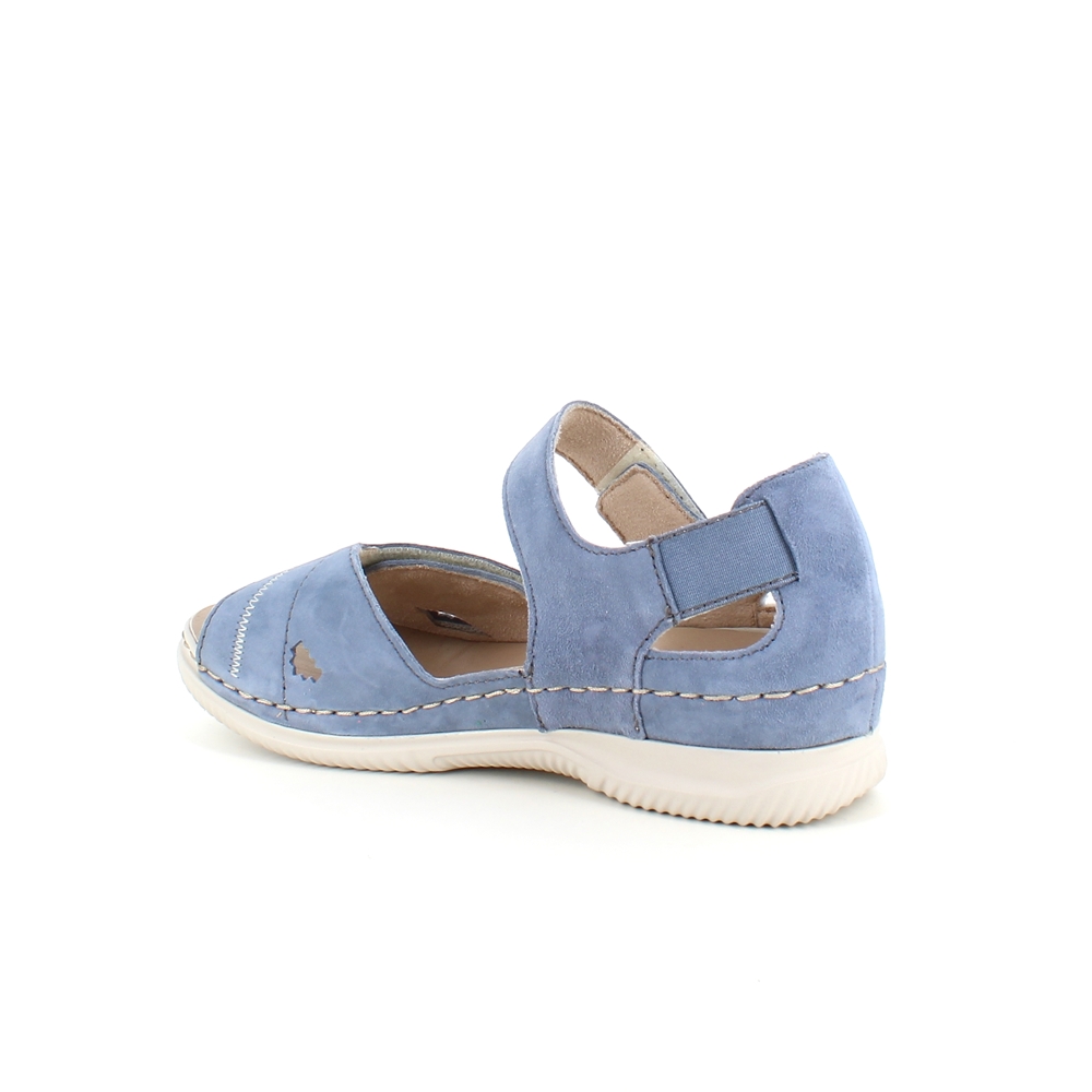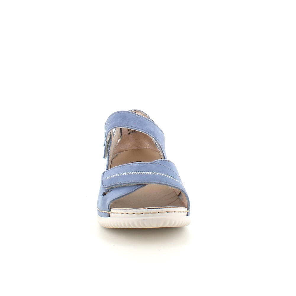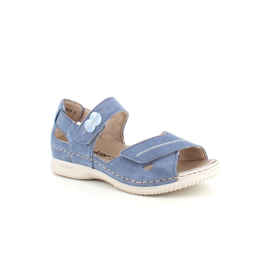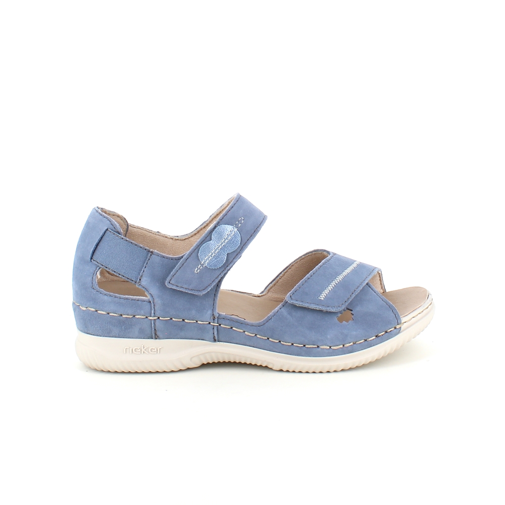 Elegant blå semsket sandal fra Rieker med flotte detaljer i remmene.