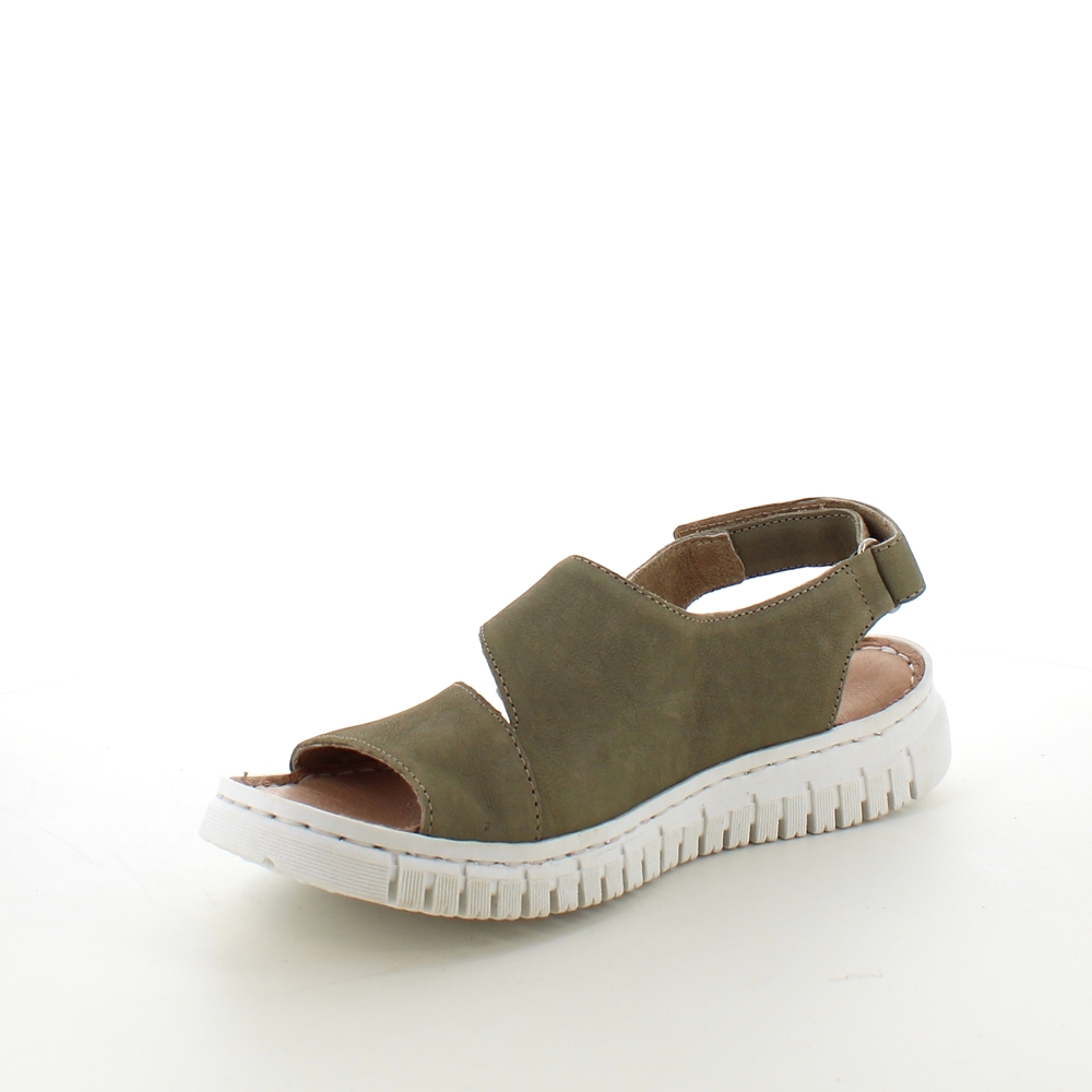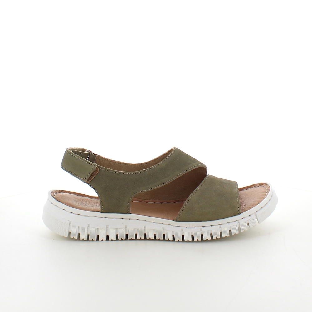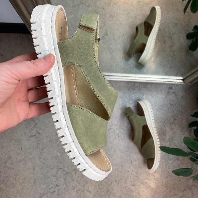 Flott grønn skinnsandal fra Relaxshoe med to faste remmer over forfoten.