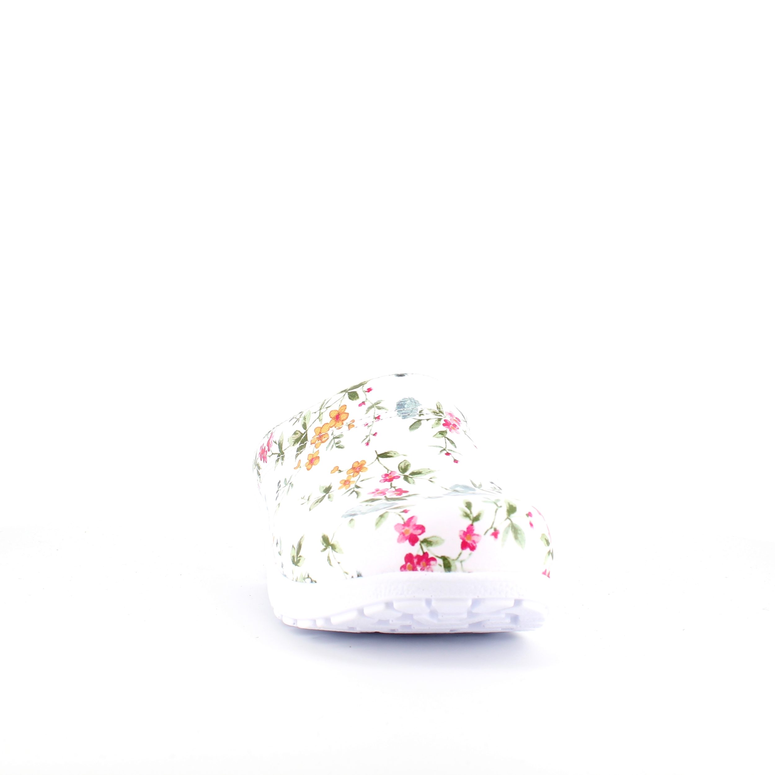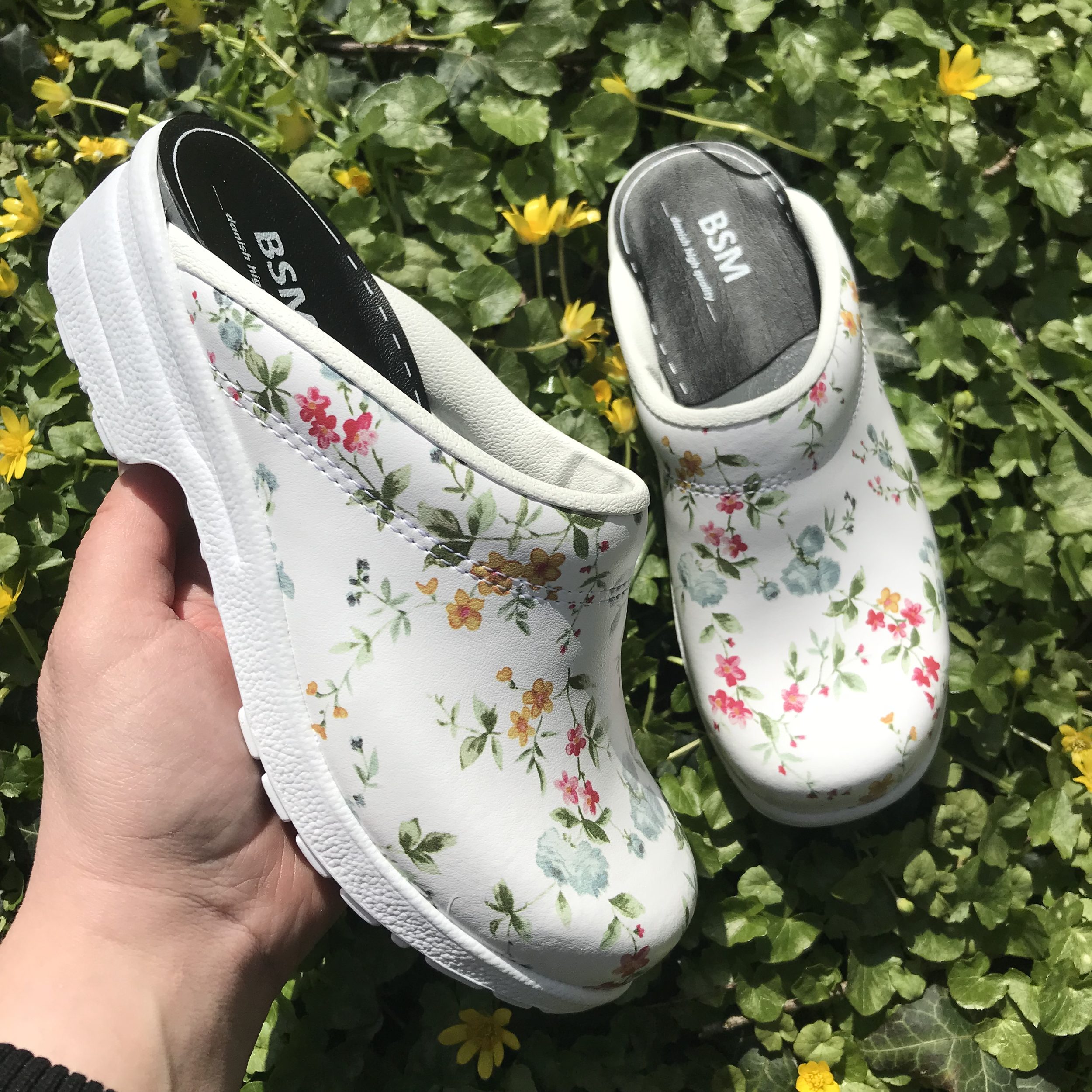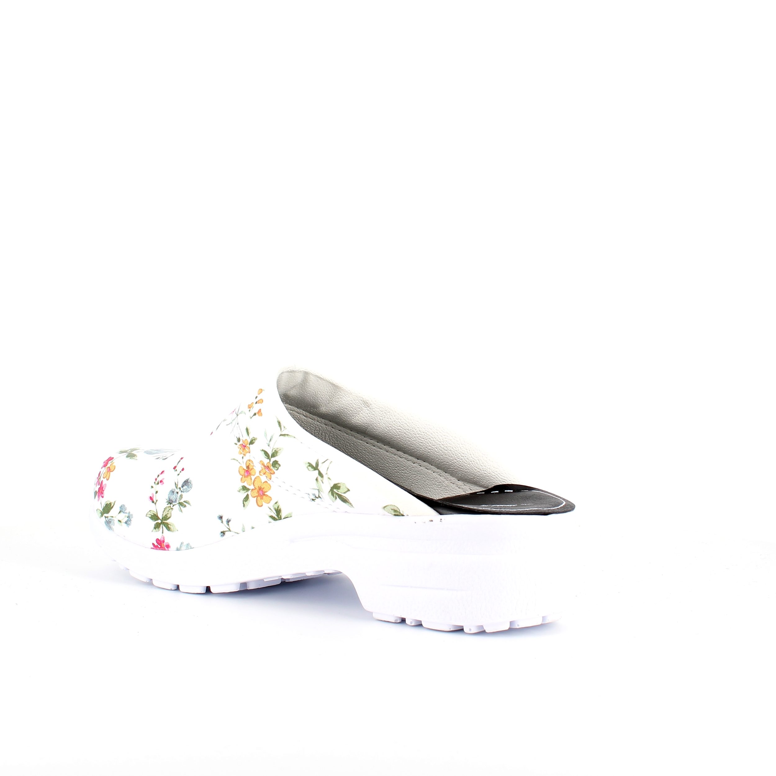Hvit blomstret tresko i dansk kvalitet uten kap.