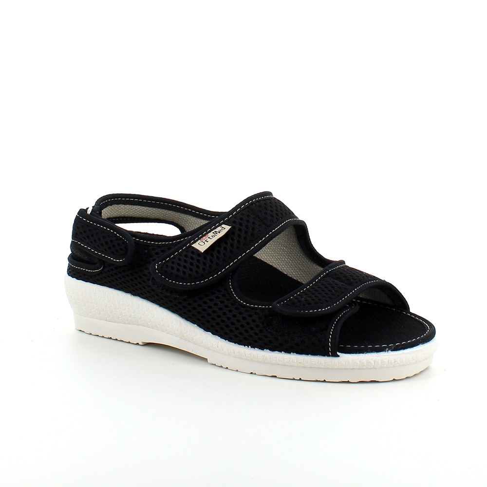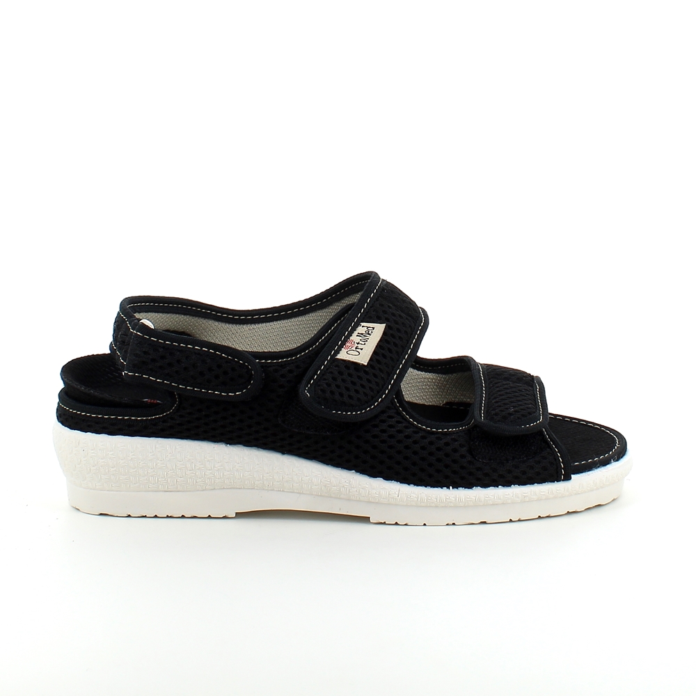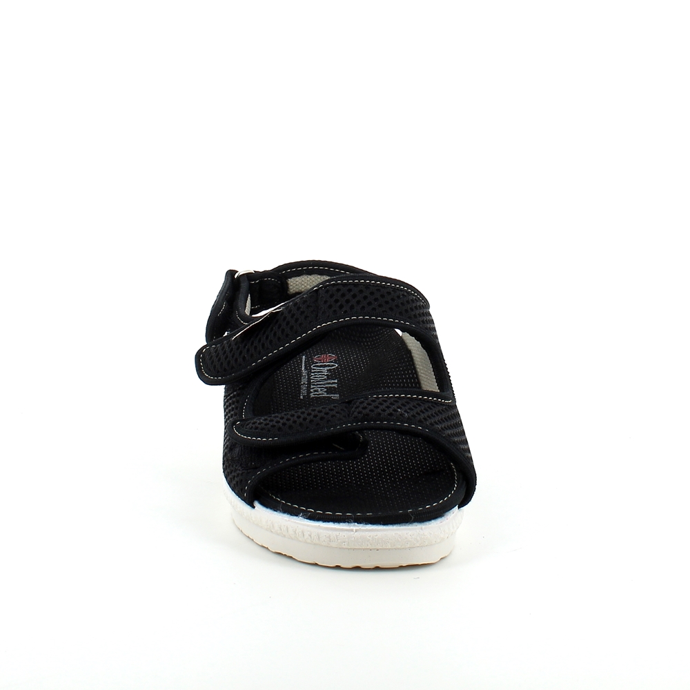 Bred ortopedisk sandal i svart med borrelås i forfoten.