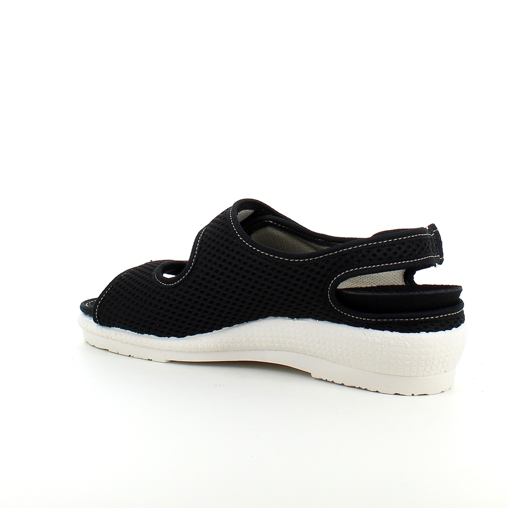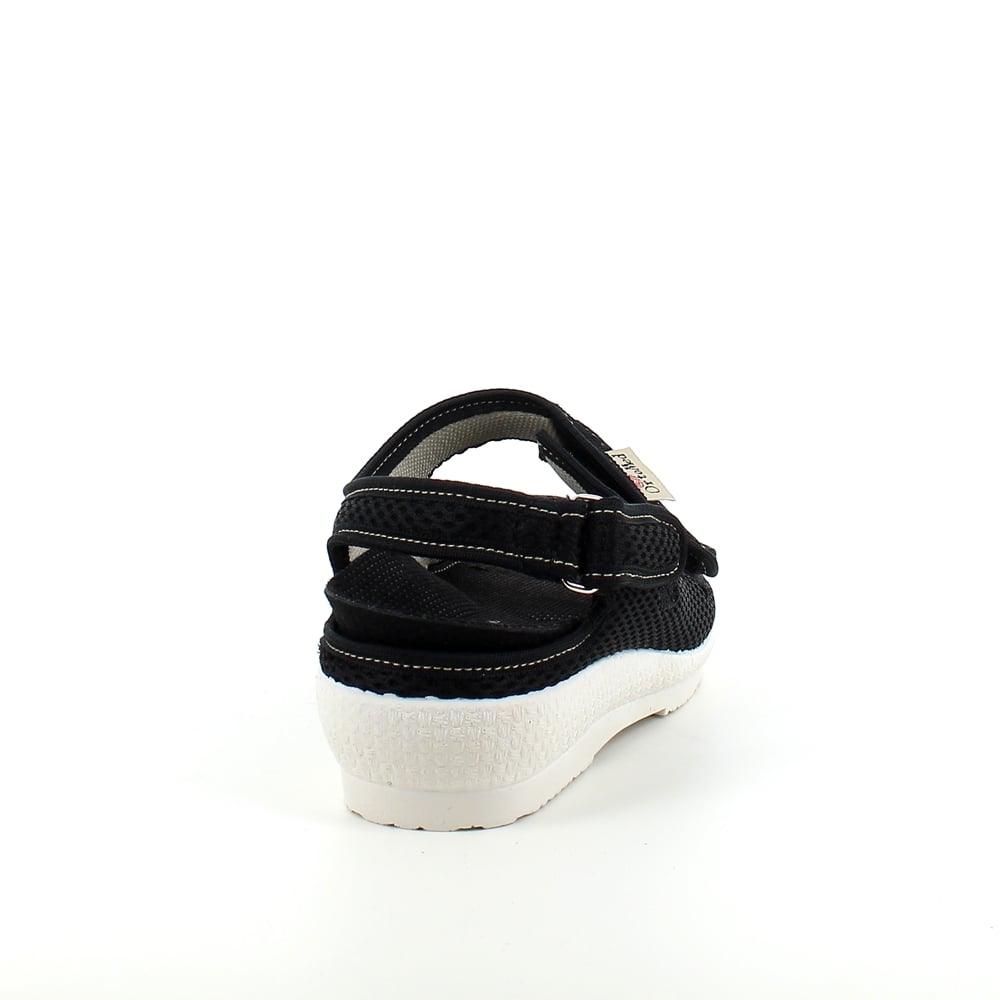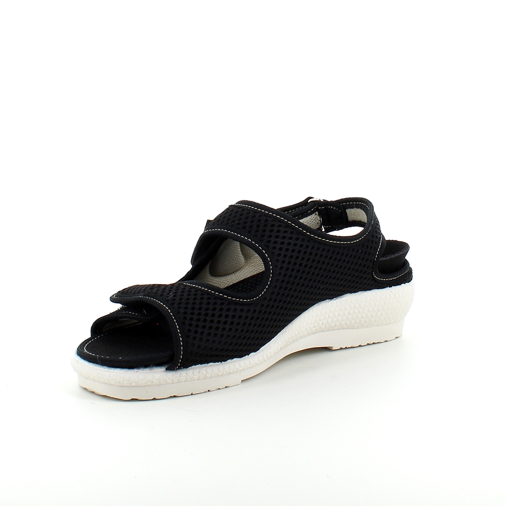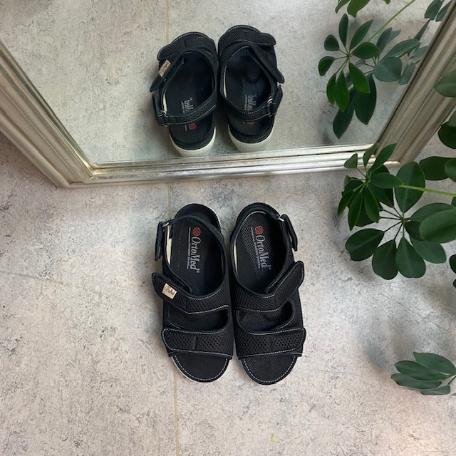 Bred ortopedisk sandal i svart med borrelås i forfoten.