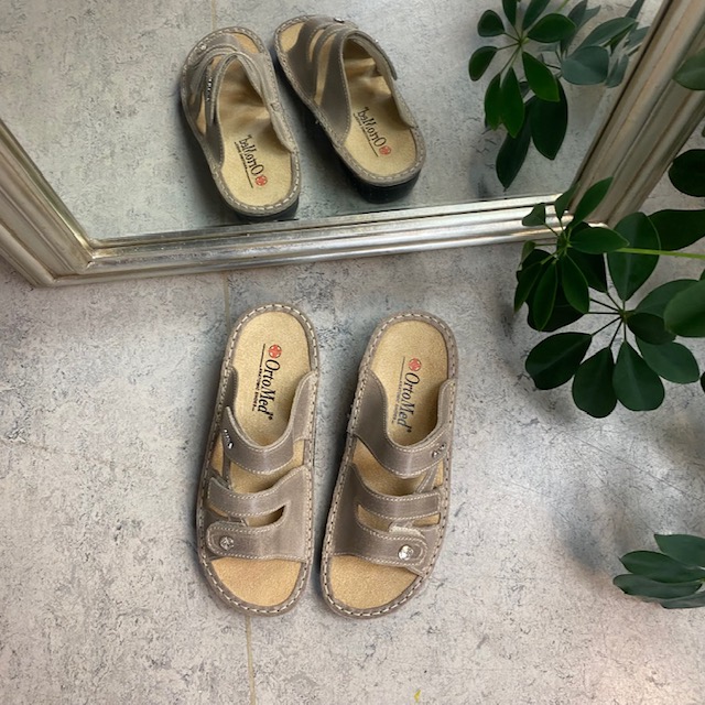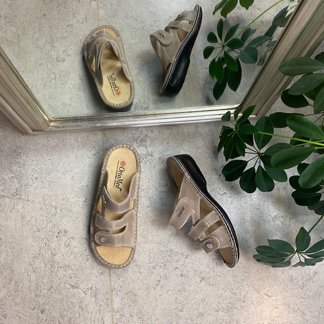 Sandalen har såler som har svangstøtte. Dette er en ortopedisk sko.