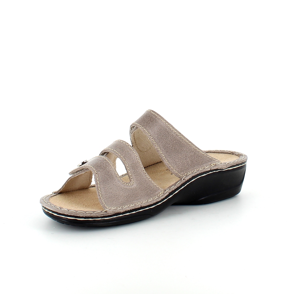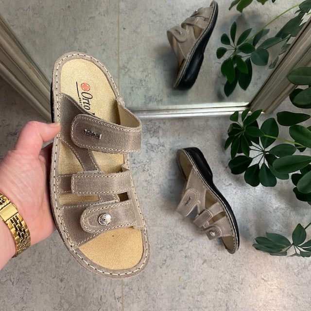 Bred ortopedisk sandal i beige med borrelås i forfoten