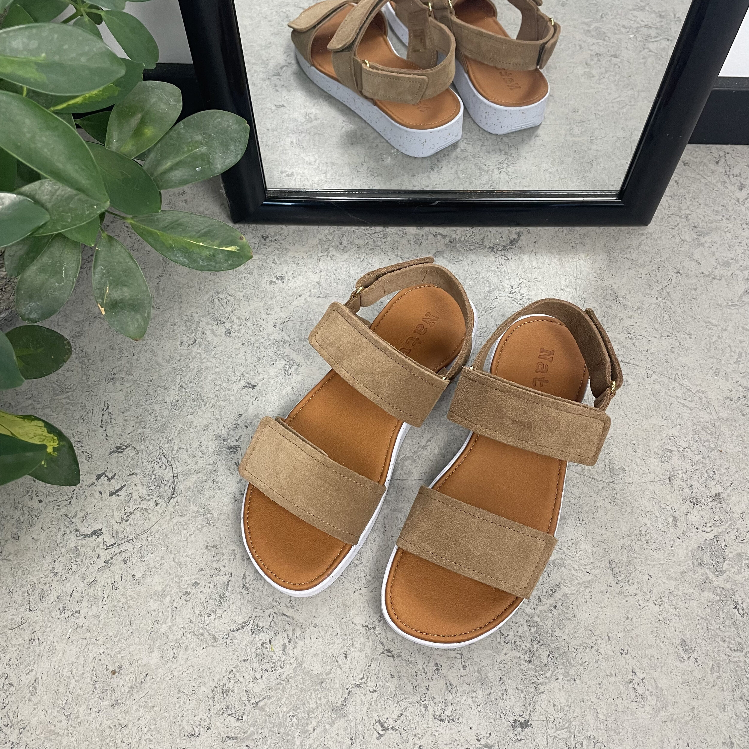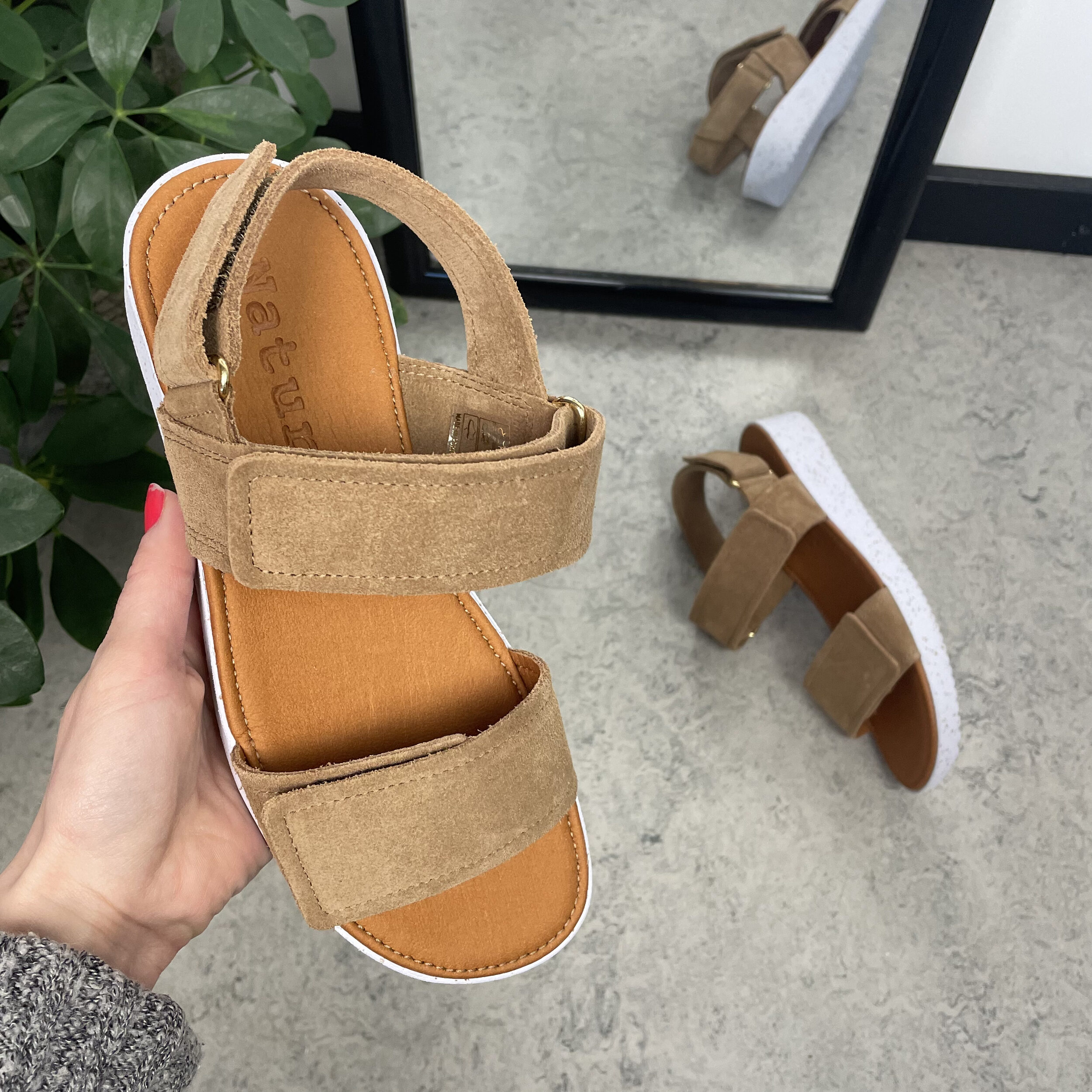 Sandalen har god støtdemping og yttersålen er i naturgummi med korkrester.