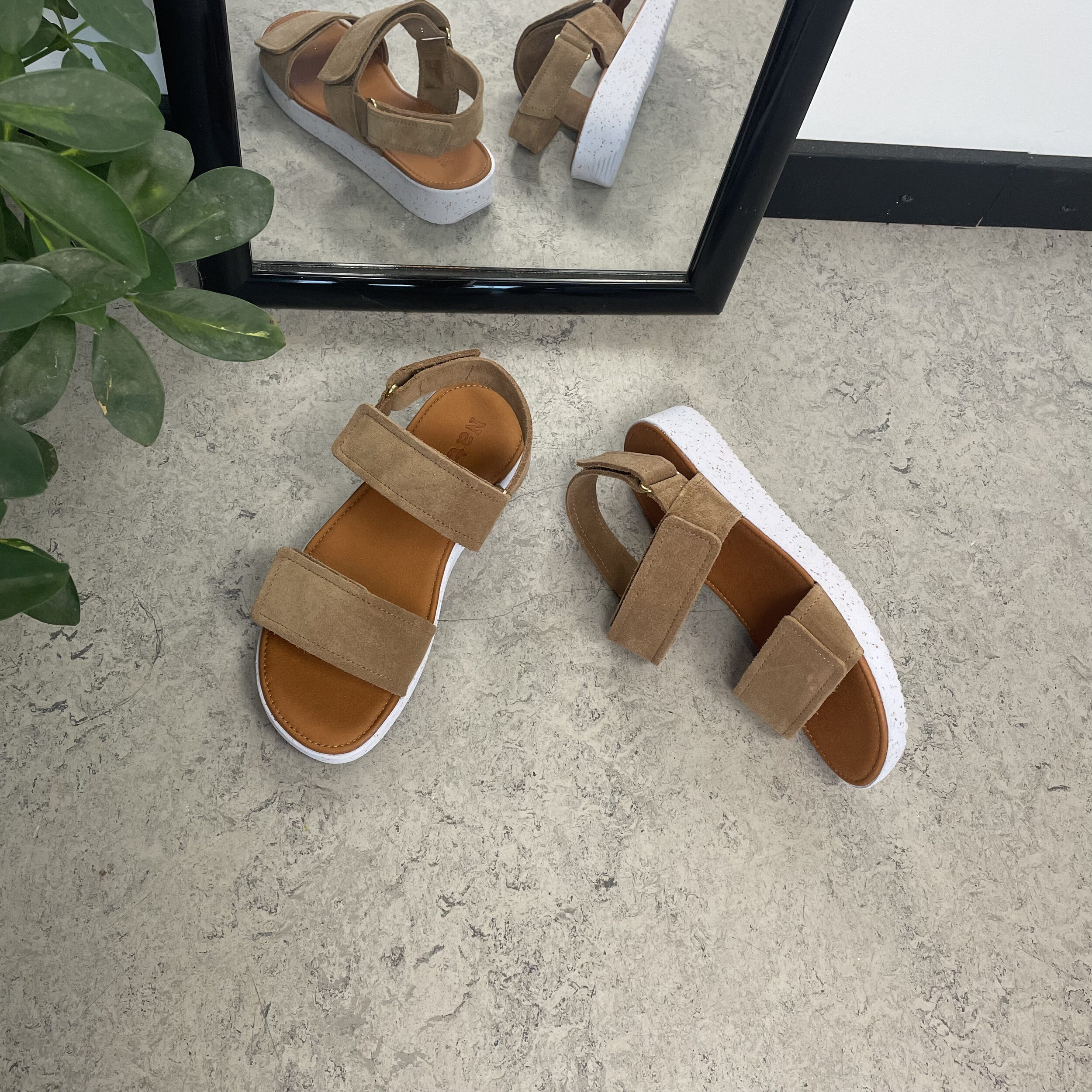 Sandalen har en bred passform og er derfor god for deg med brede føtter.