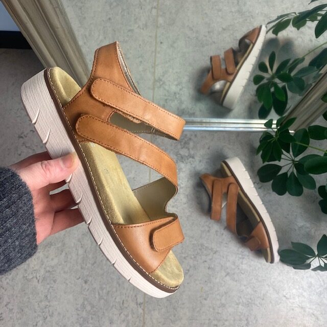 Sandalen har bredde F, så den er god til brede føtter.