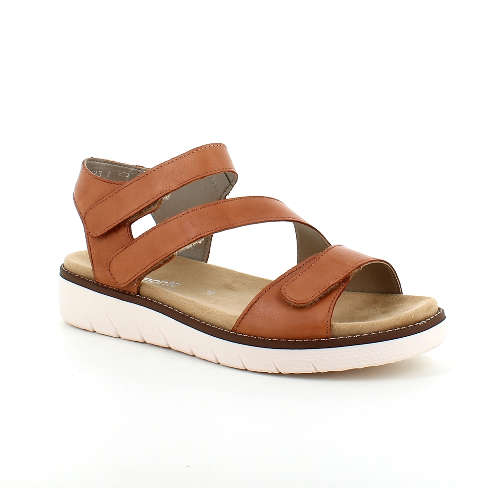Brun sandal fra Remonte med 3 borrelåsremmer og uttakbar såle