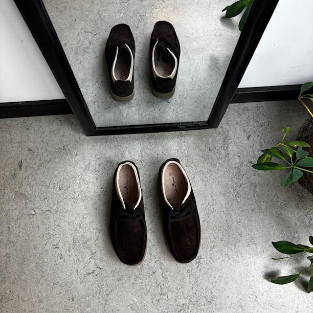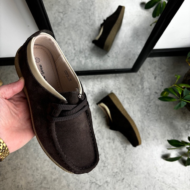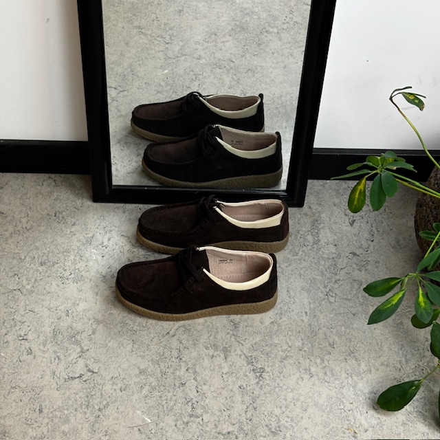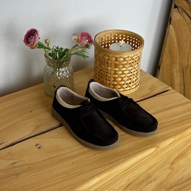 Brun semsket sko med rågummisåle