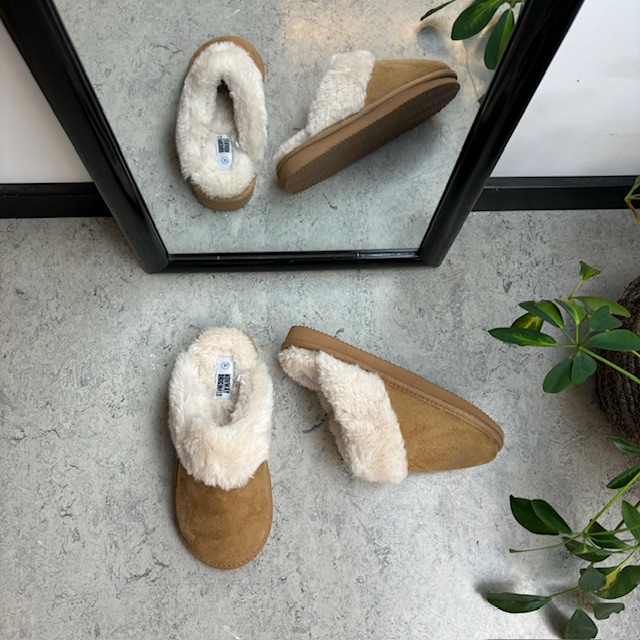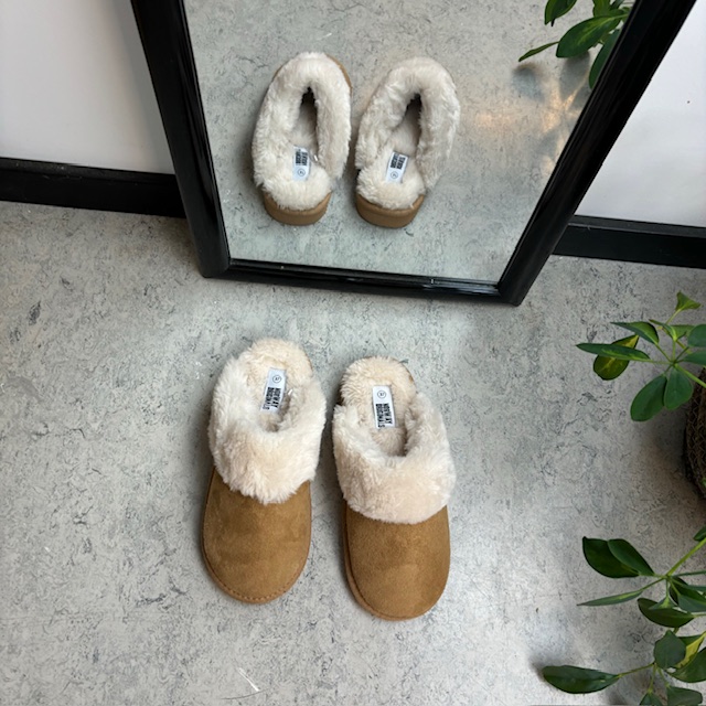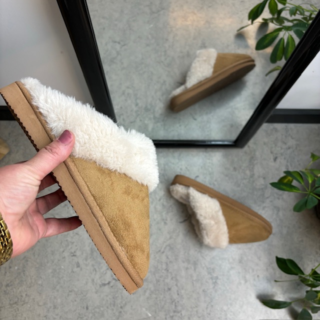 Brun Slip In tøfler med fleecefôr