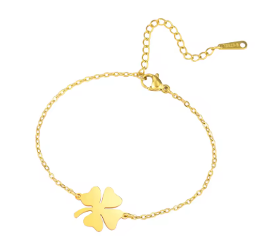 Dette vakre firkløverarmbåndet er et feminint og tidløst smykke, designet i blankpolert rustfritt stål med gullbelegg, som gir et eksklusivt og moderne utseende. Armbåndet har en fin, justerbar kjede og en firkløversjarm, som symboliserer hell, kjærlighet og lykke – perfekt som gave til deg selv eller en du er glad i.