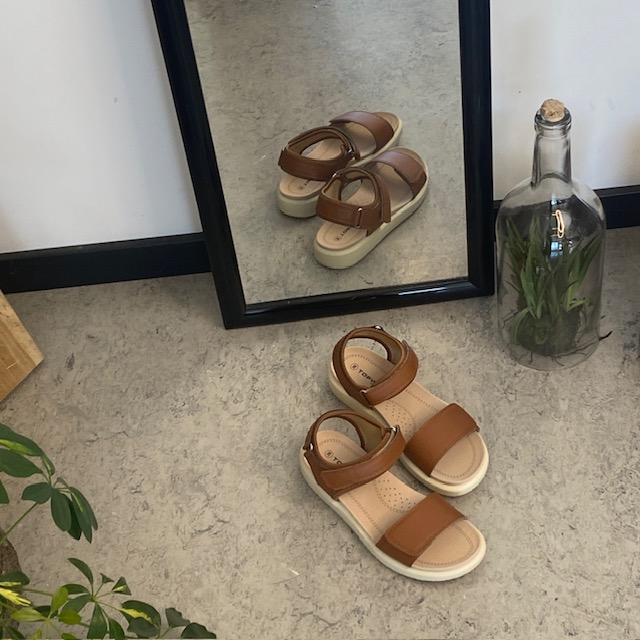 Her får du en super anvendelig sandal i en vakker cognacbrun nyanse, som utstråler både varme og enkel eleganse. Sandalen har to brede borrelåsstropper, som gir en enkel og presis justering, slik at du får optimal passform – også hvis føttene dine endrer seg i løpet av dagen.