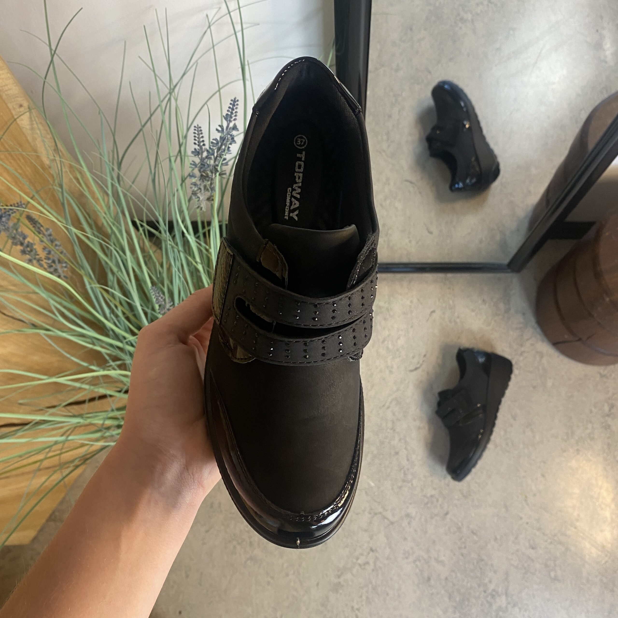 Elegant sko med borrelås og flotte detaljer