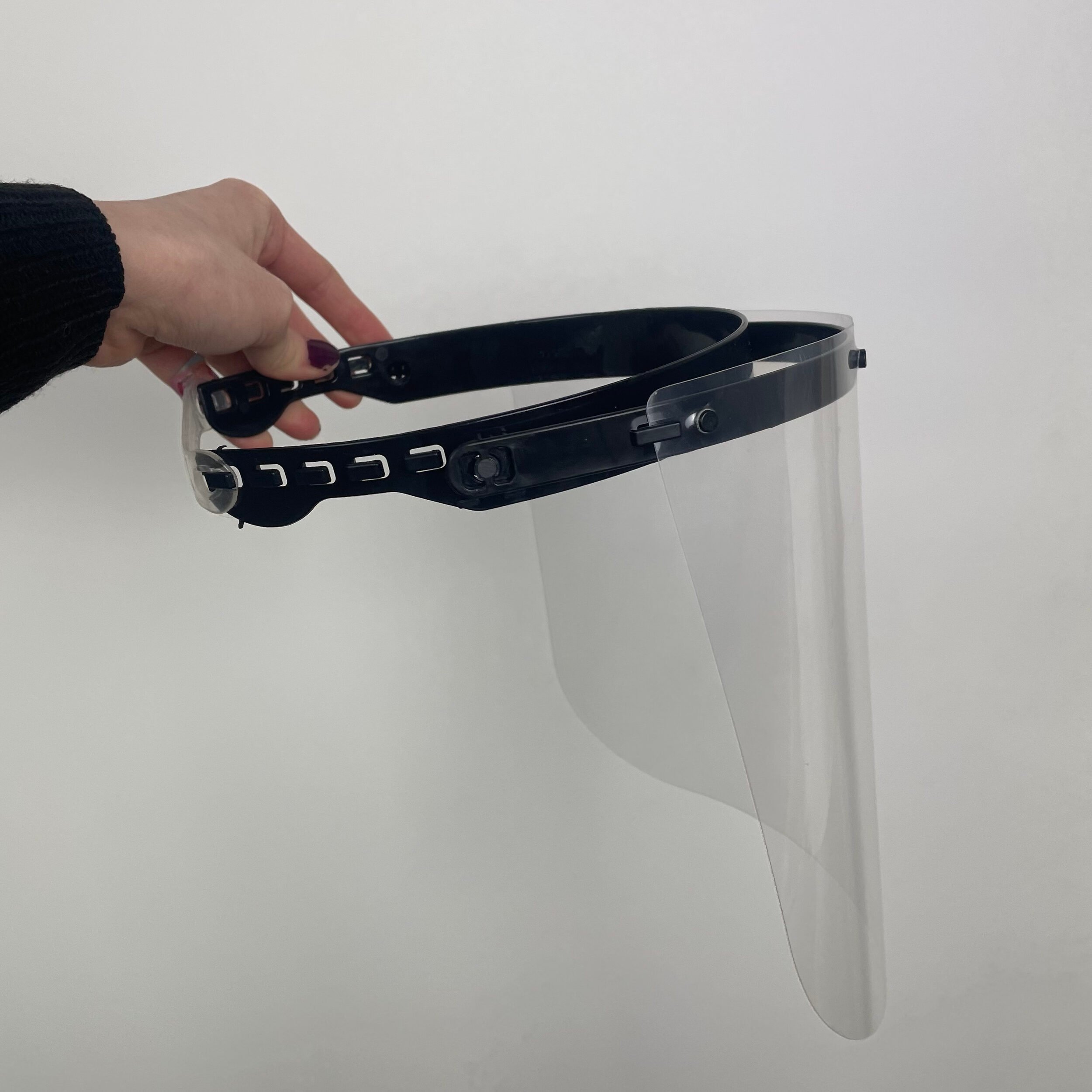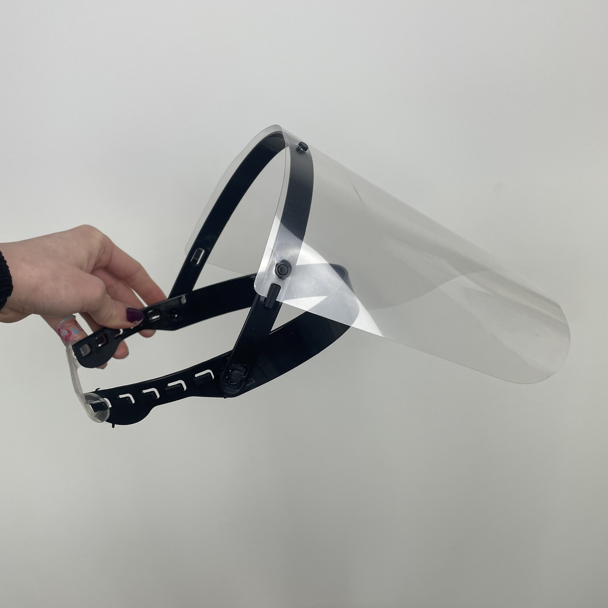 Ansiktsvisiret er en transparent skjerm som du fester rundt hodet som om det var en solhatt. Visiret kommer med en justerbar elastikk, slik at du enkelt kan justere hvor tett visiret skal sitte rundt hodet ditt.