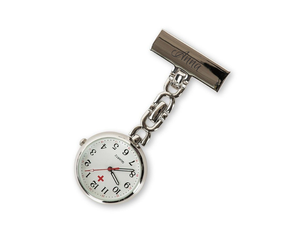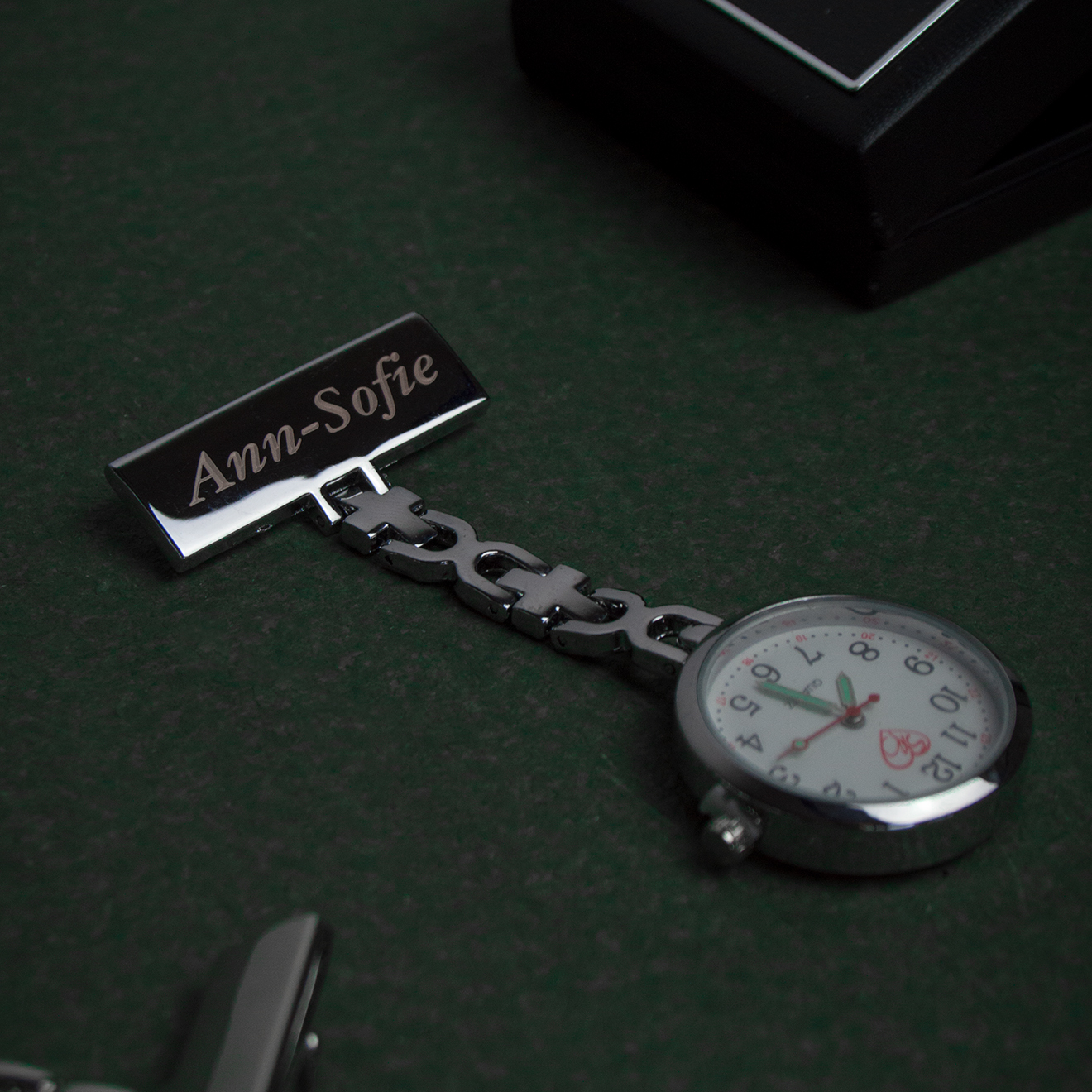 Sykepleieur med fin kjede – Kjedet er smykkelignende. Fås i tre versjoner – en versjon med hvit urskive, en med selvlysende urskive og en med perlemorsurskive.