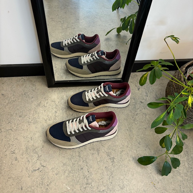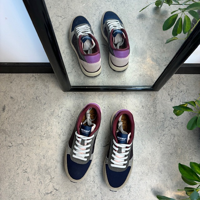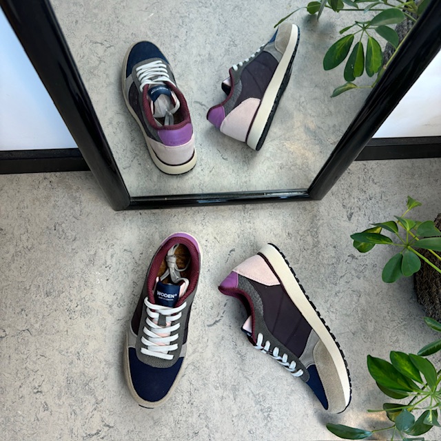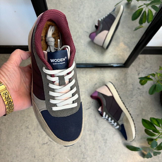 Sko i høstfarger fra Woden i en fargekombinasjon av brun/blå/rosa
