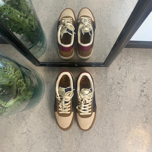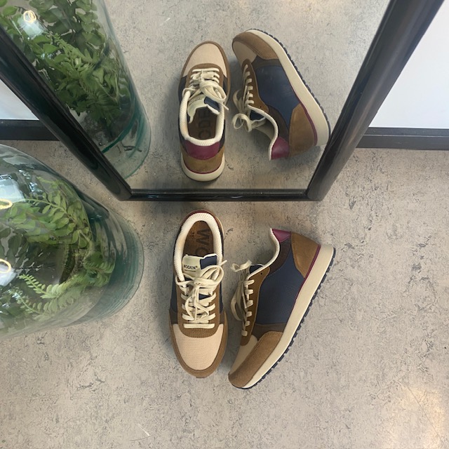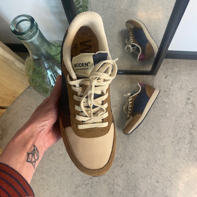 Sko fra Woden i en fargekombinasjon av blå/beige/brun.