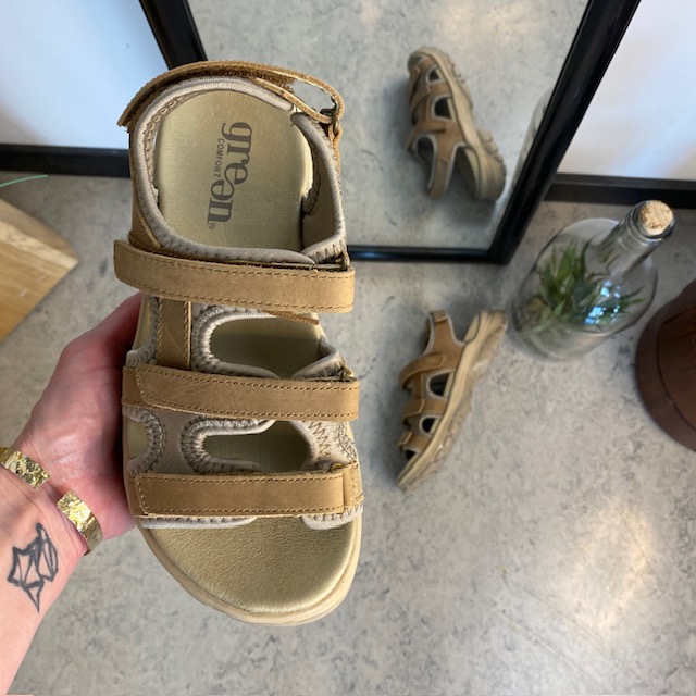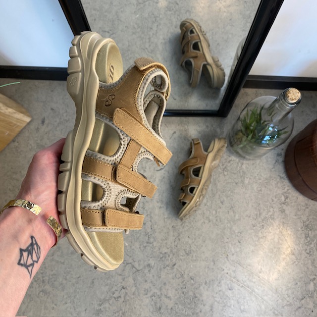 Opplev både komfort og praktisk anvendelighet med Kiruna Kaisa – en lettvektssandal som er ideell for både hverdagslige aktiviteter og et aktivt liv. Sandalen er utstyrt med fire justerbare borrelåsstropper over vristen og hælen, slik at du enkelt kan tilpasse passformen til nettopp din fot. Den formstøpte fotsengen med 4 mm Energyfoam og svangstøtte sørger for optimal komfort og støtte, slik at både føtter og kropp har det bra hele dagen. Sandalen er bygget på den romslige lesten H, som gir ekstra plass til foten. Den klassiske taupe-fargen gjør det enkelt å kombinere sandalen med resten av garderoben.