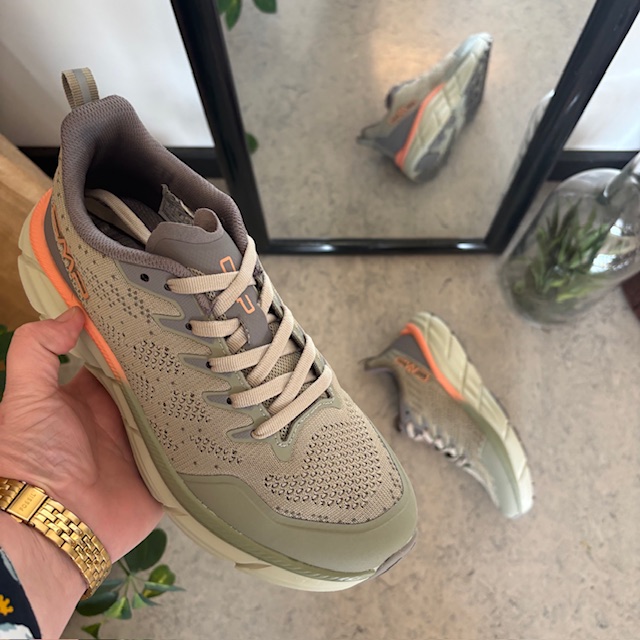 Overdelen i pustende polyesterstrikk sikrer fleksibilitet, mens EVAC mellomsålen tilbyr utmerket støtdemping.