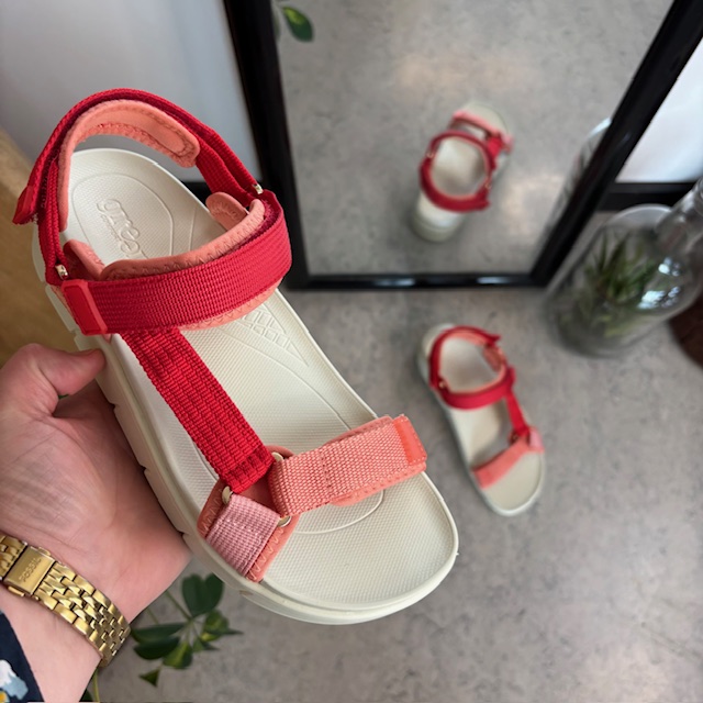 Sandalen kombinerer et dynamisk utseende med praktisk funksjonalitet, perfekt for aktive dager.