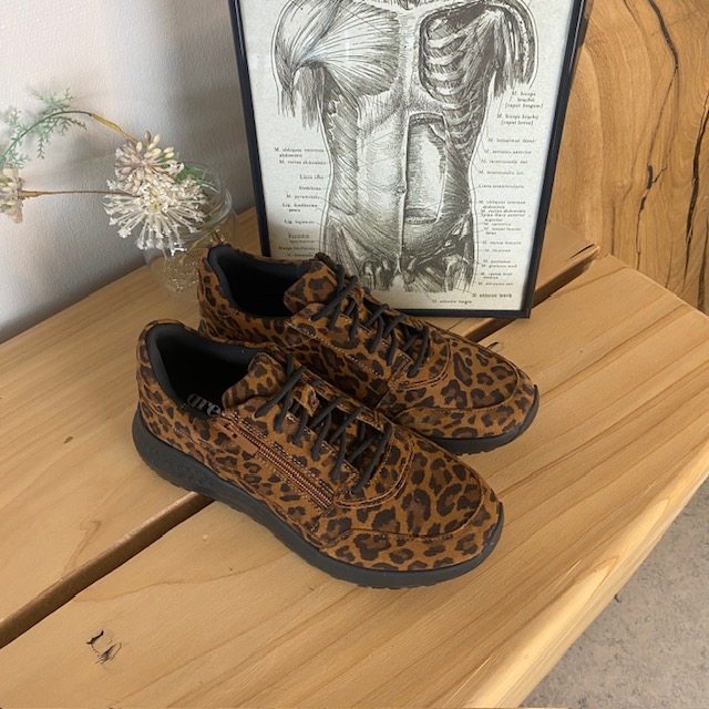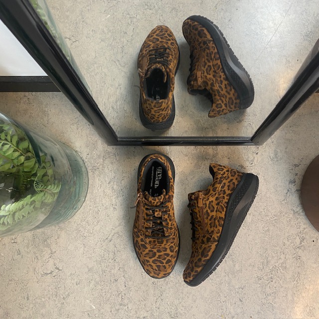 Overdelen på denne smarte sko er i semsket skinn med flott leopardmønster.