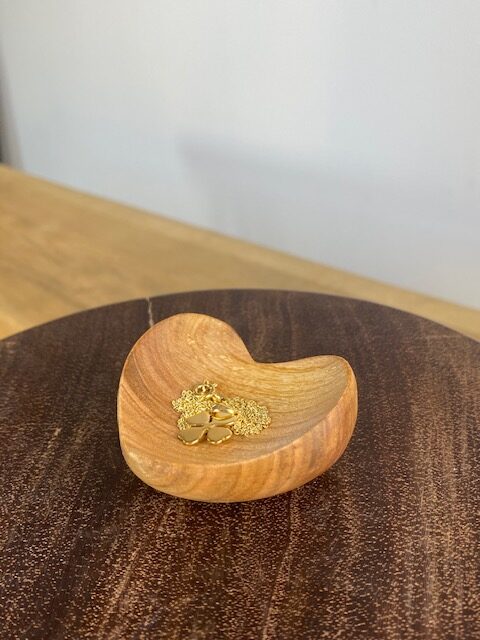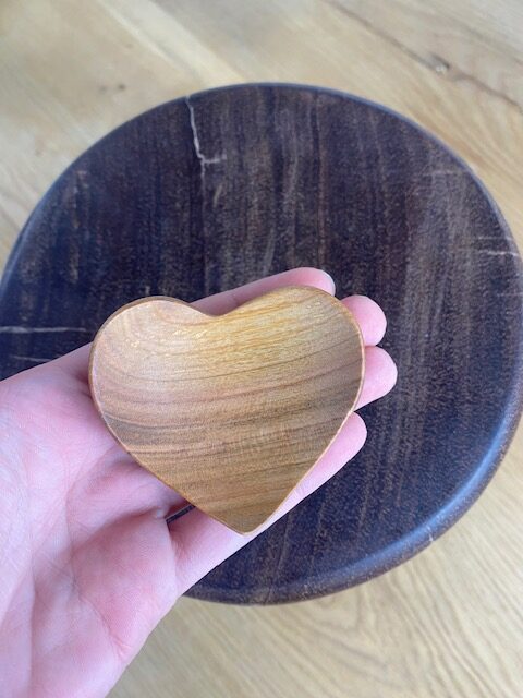 Denne hjerteformede treskål er både dekorativ og funksjonell.